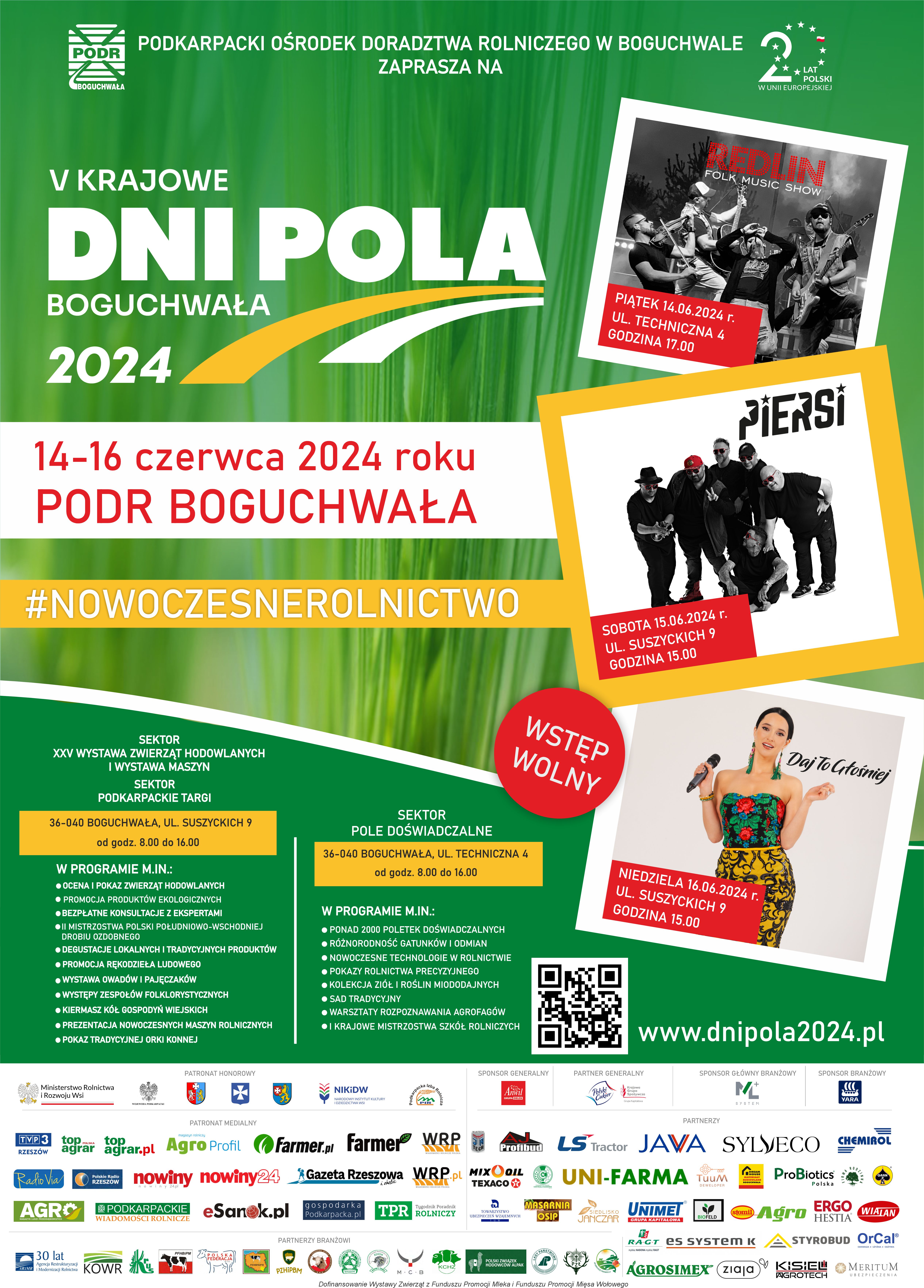 Wydarzenie, organizowane przez Podkarpacki Ośrodek Doradztwa Rolniczego w Boguchwale pod hasłem „Nowoczesne rolnictwo”. Pokazane zostaną innowacje w produkcji roślinnej poprzez prezentację dorobku polskiej hodowli roślin oraz ofert firm zaopatrujących rolnictwo.
