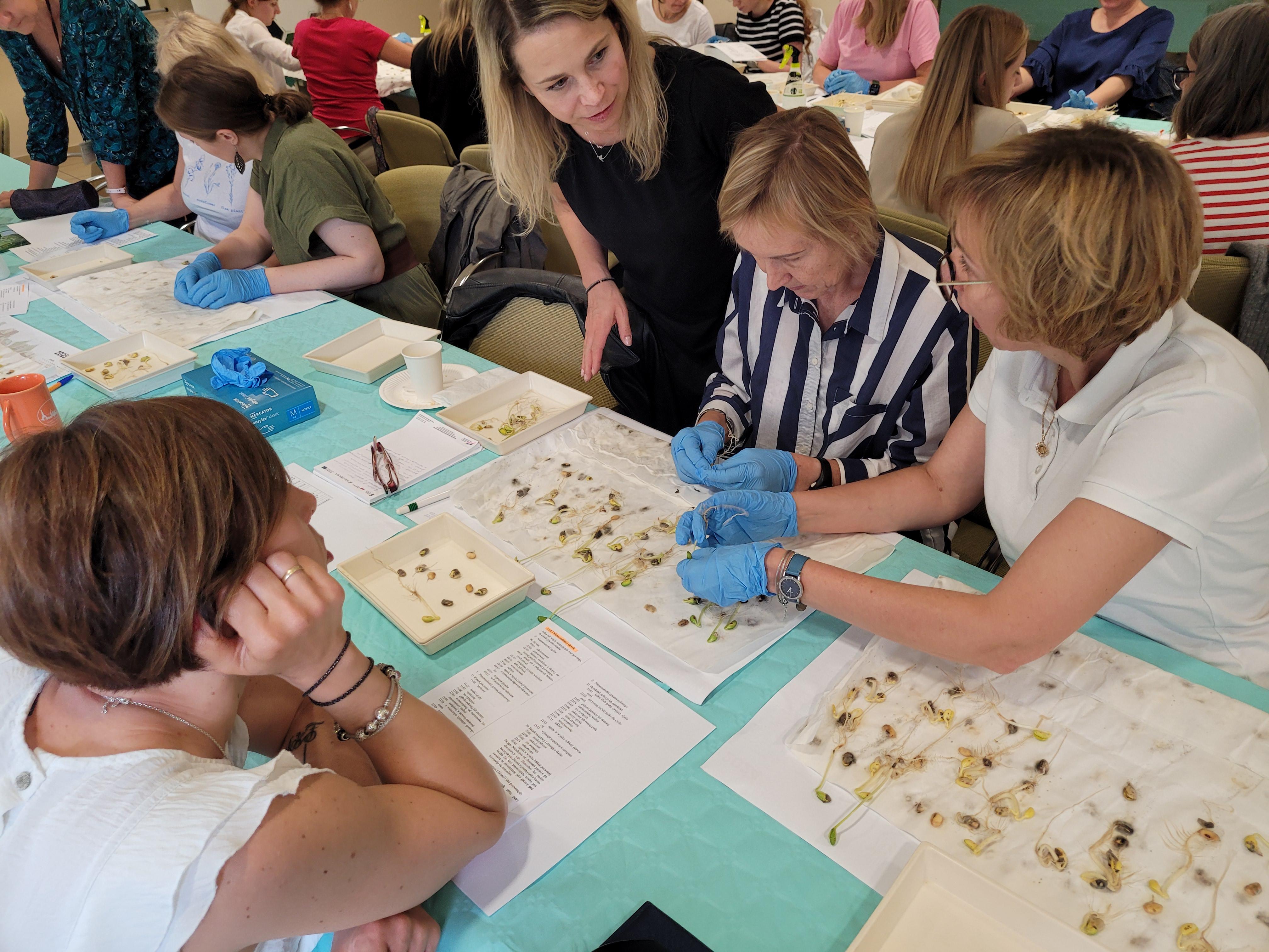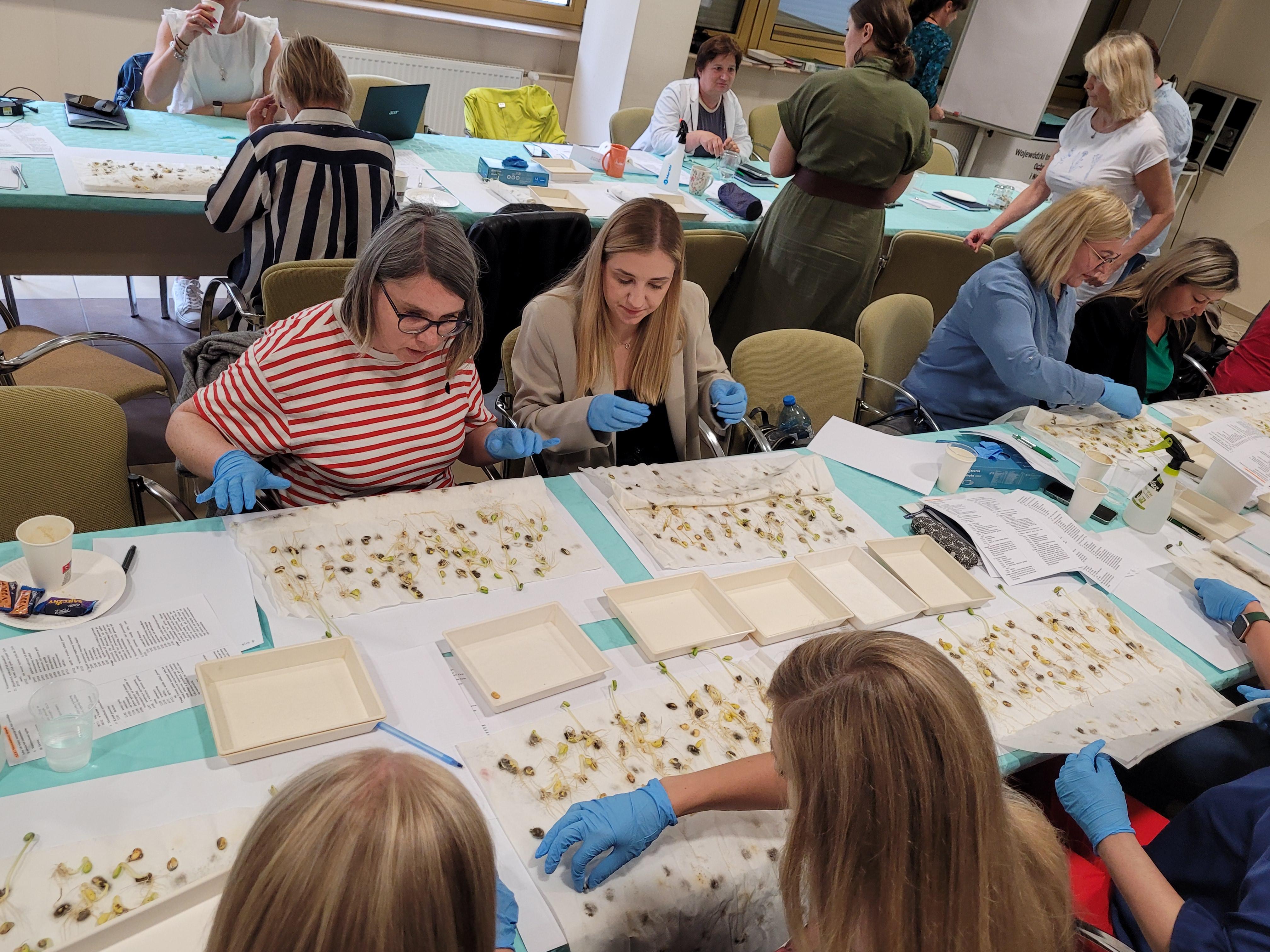 Pierwszego dnia uczestnicy wspólnie odkrywali tajniki i niuanse oceny zdolności kiełkowania wybranych gatunków roślin uprawnych. Mieli możliwość porównania warunków kiełkowania oraz ich wpływu na ocenę zdolności kiełkowania. Dzięki wykorzystaniu mikroskopu wszyscy szkolący się mieli możliwość jednoczesnej oceny anormalności siewek. Wspólna dyskusja umożliwiła wyjaśnienie wszelkich wątpliwości powstałych w trakcie analizy.