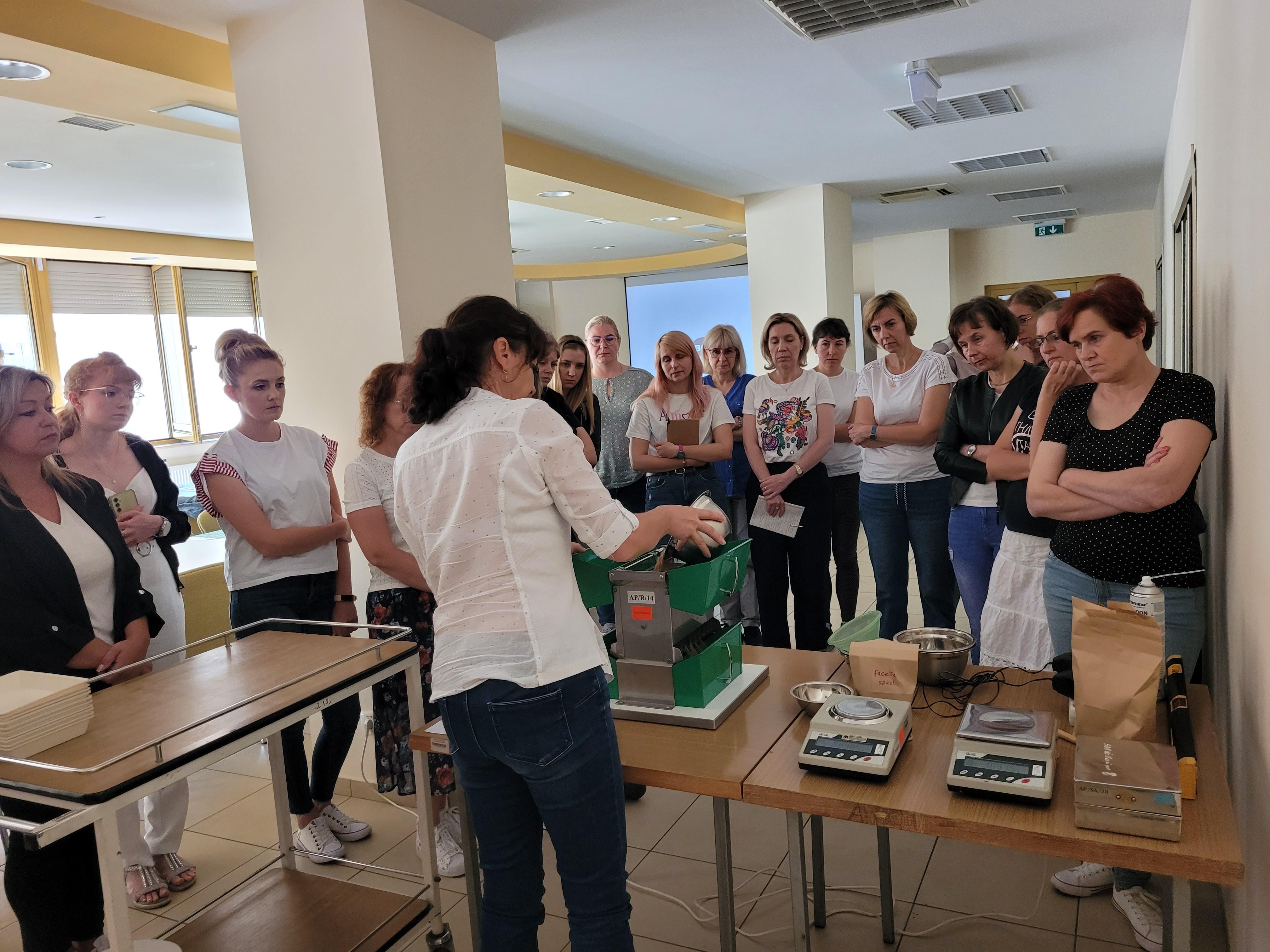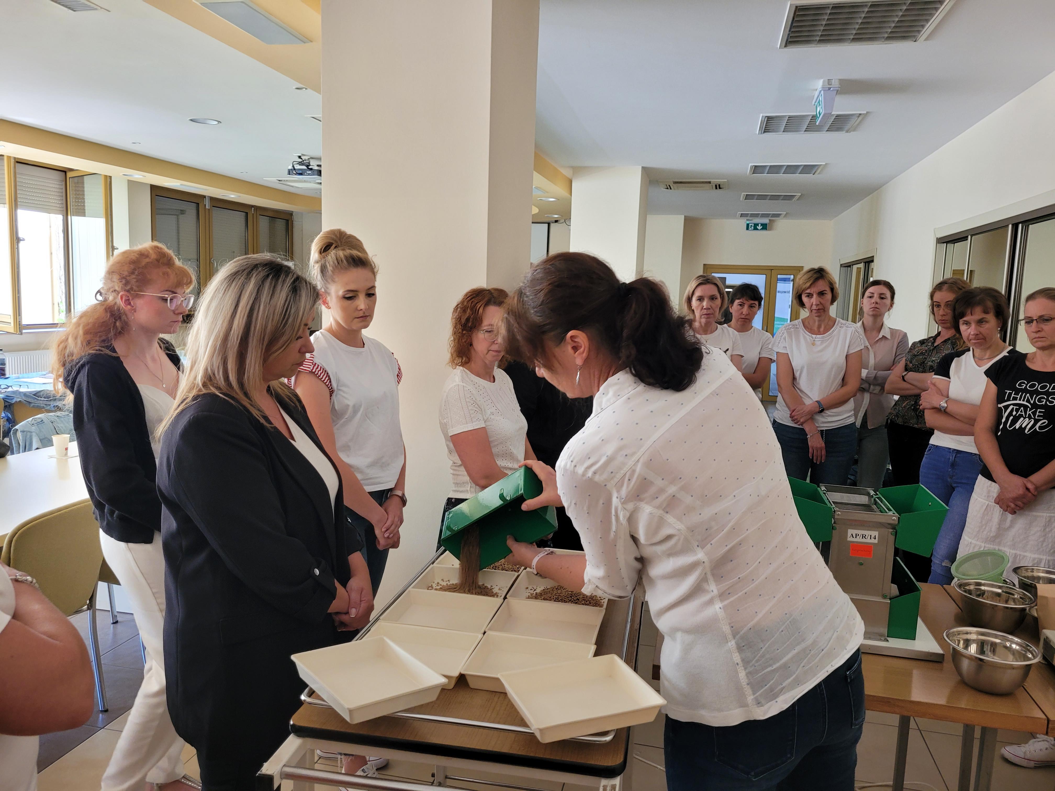 Drugiego dnia prowadzący skupili się na przedstawieniu zasad badania i oceny żywotności metodą tetrazolinową nasion wybranych gatunków oraz nowych technologii wykorzystywanych w badaniu wilgotności materiału siewnego. Zajęcia obejmowały również omówienie zagadnień związanych z metodą sprawdzania rozdzielaczy glebowych i wirówkowych. W trakcie zajęć praktycznych uczestnicy mogli się przekonać jak ważne jest odpowiednie przygotowanie próbek kalibrażowych, aby procedura sprawdzania rozdzielacza była efektywna.