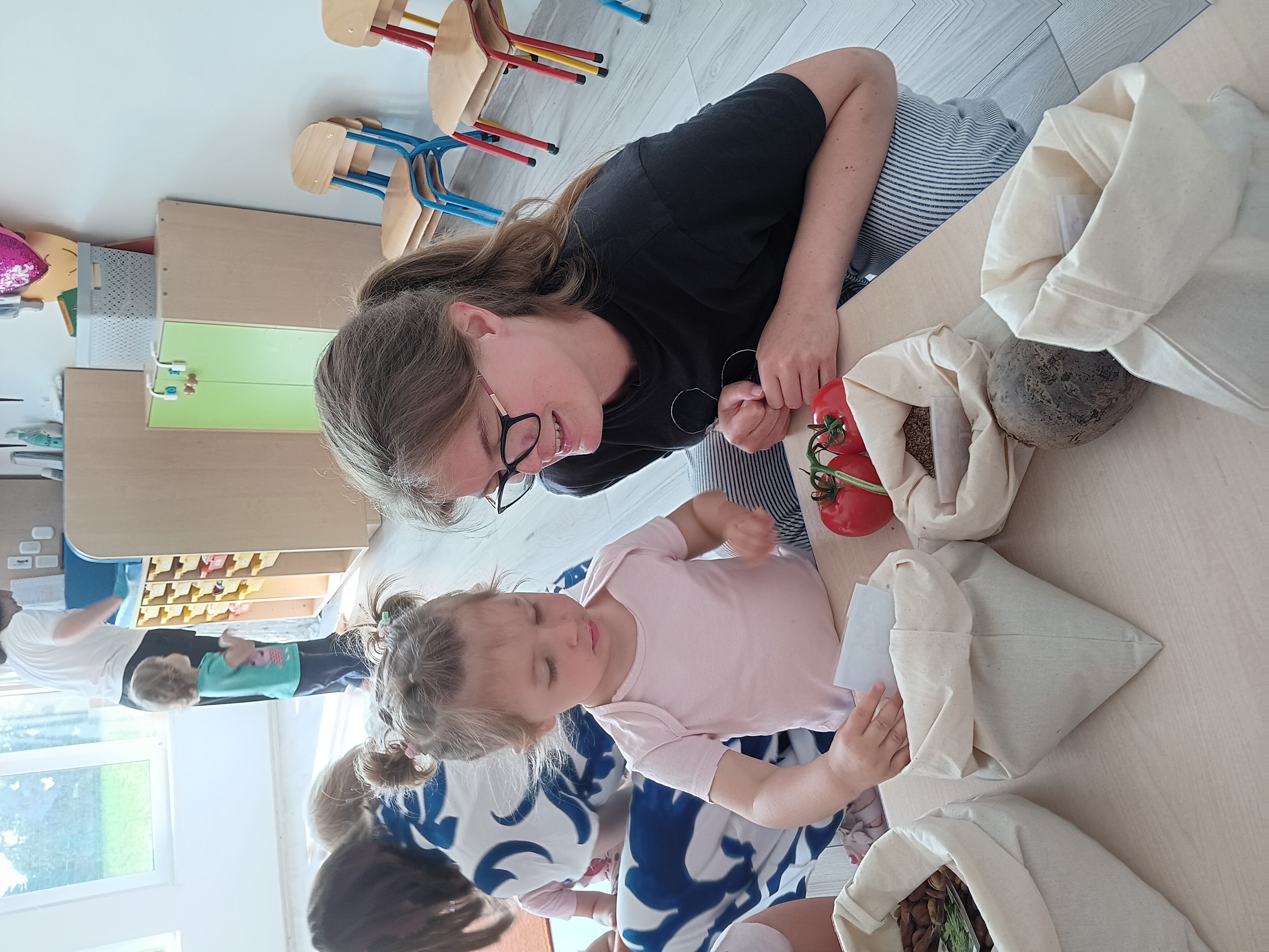 Podczas warsztatów dzieci miały okazję wziąć udział w grze „żywe memory”, w której dopasowywały nasiona do odpowiednich produktów. To była świetna zabawa, która jednocześnie uczyła dzieci o pochodzeniu różnych roślin i ich znaczeniu w naszym codziennym życiu. Dzieci miały możliwość dotykania różnych nasion, co pozwoliło im lepiej poznać ich wielkość, kolor i fakturę. Było to bardzo angażujące doświadczenie, które z pewnością na długo pozostanie w ich pamięci.
