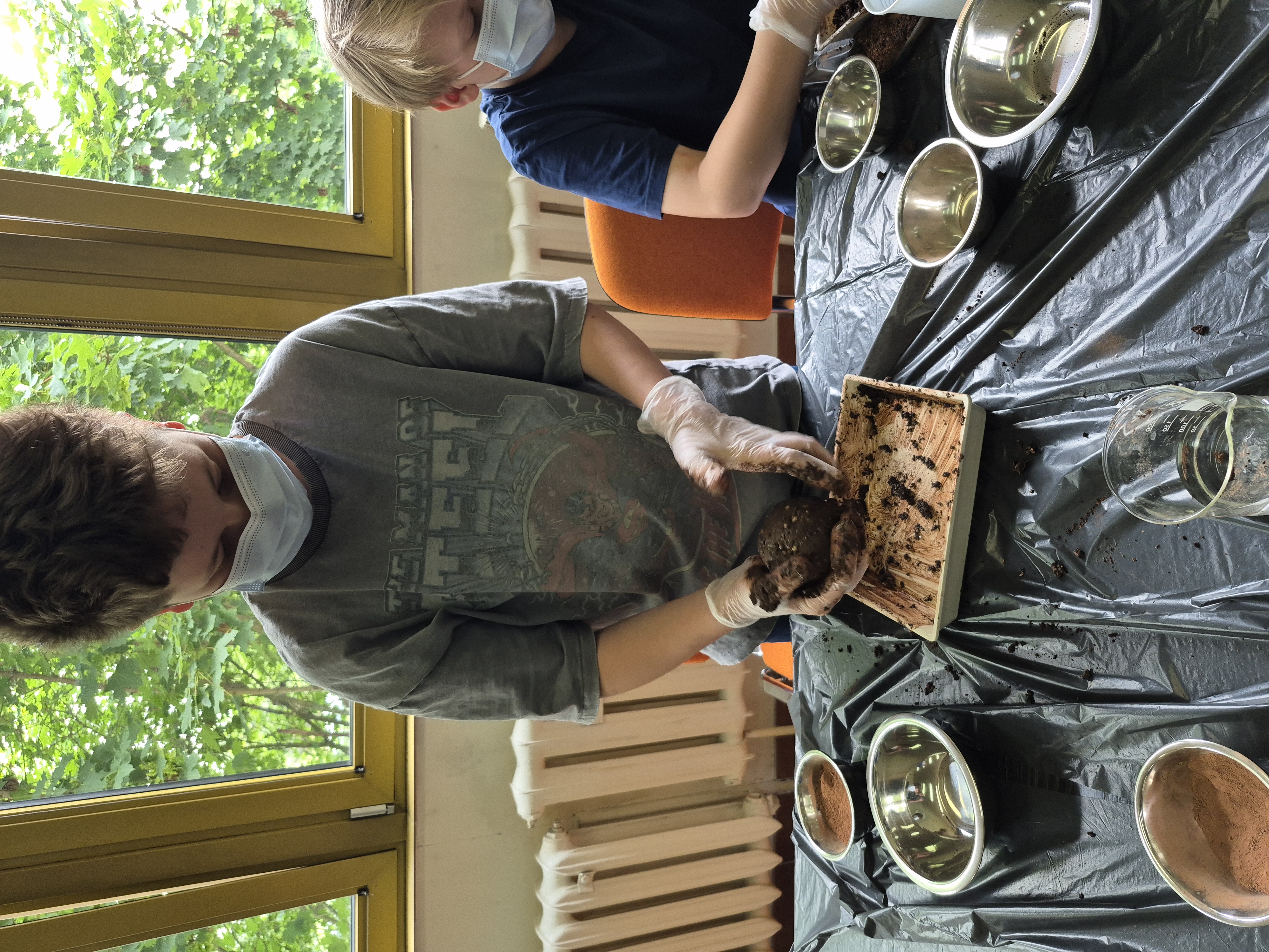 Kolejnym punktem programu były „bomby kwietne”. Dzieci z entuzjazmem mieszały torf, glinę oraz nasiona łąki kwietnej, tworząc małe kulki, które później mogły zasadzić w swoich ogrodach lub doniczkach. To kreatywne zajęcie nie tylko rozwijało ich zdolności manualne, ale także uczyło odpowiedzialności za rośliny.