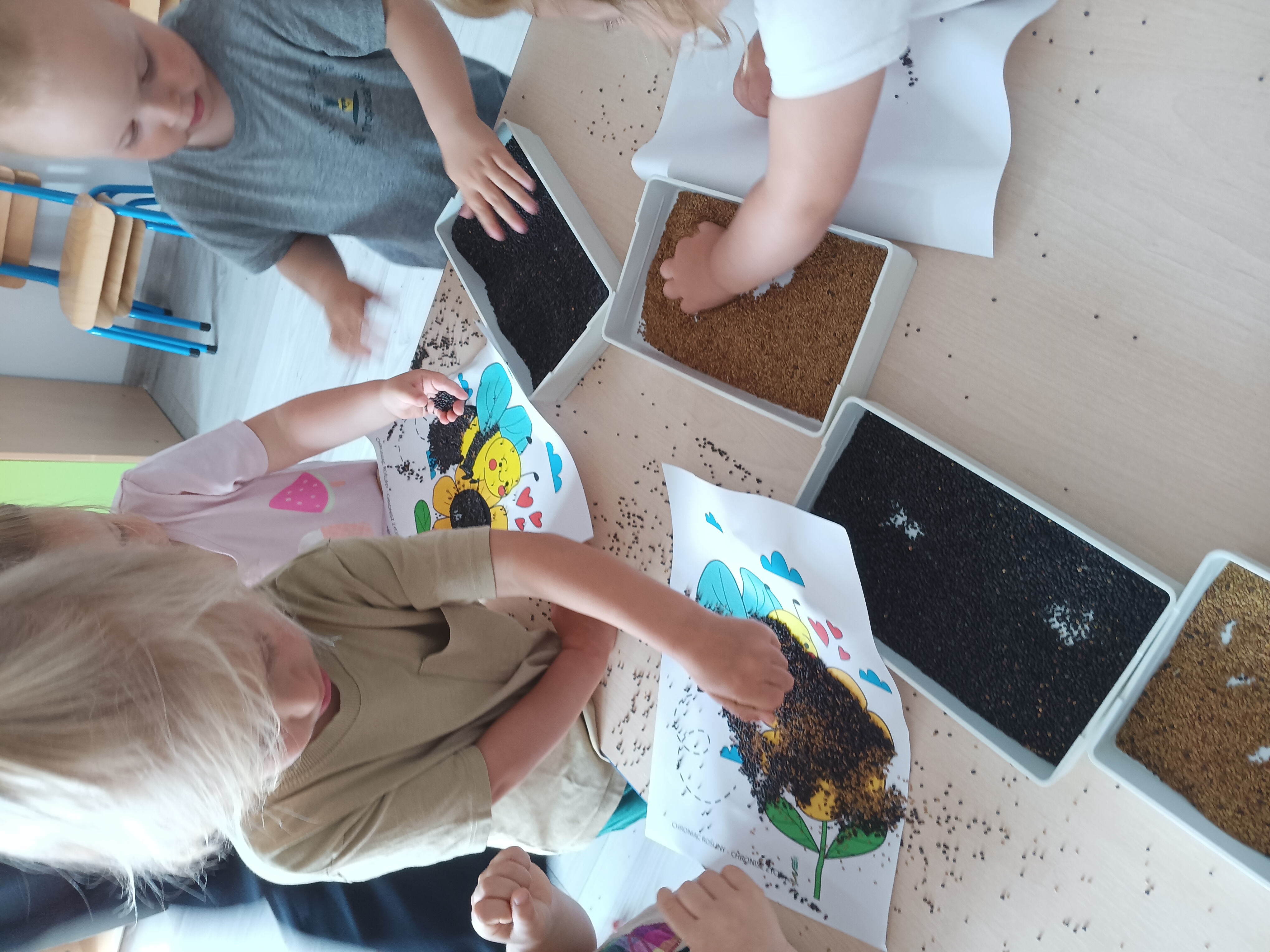 Dzieci miały również okazję wykorzystać nasiona jako materiał artystyczny do tworzenia pięknych obrazków i grafik. Te kreatywne zajęcie pozwoliły im nie tylko na ćwiczenie umiejętności manualnych, ale także na wyrażenie swojej wyobraźni i pomysłowości. Dzięki różnorodności kształtów i kolorów nasion, każde dzieło stało się unikalne.