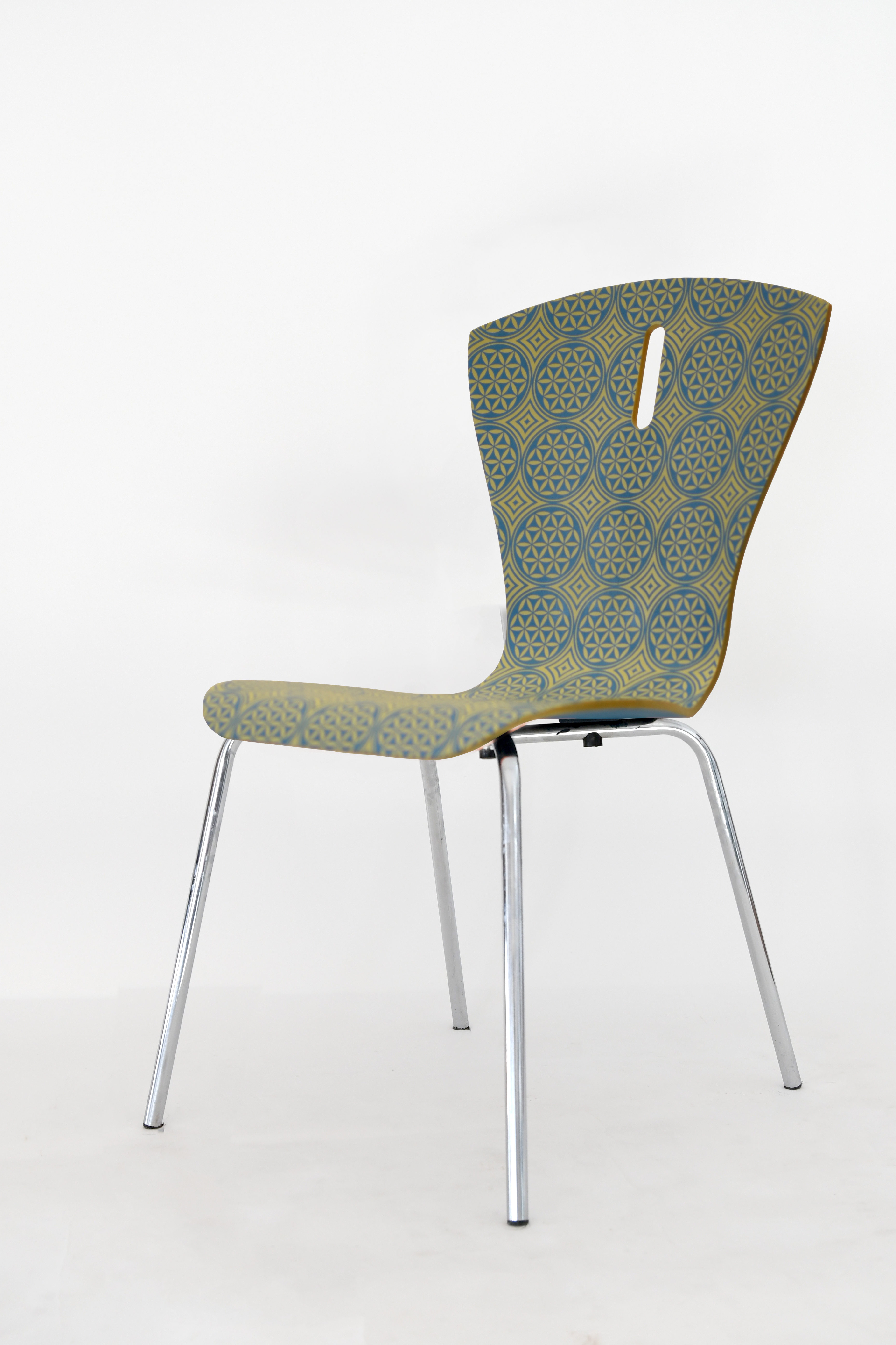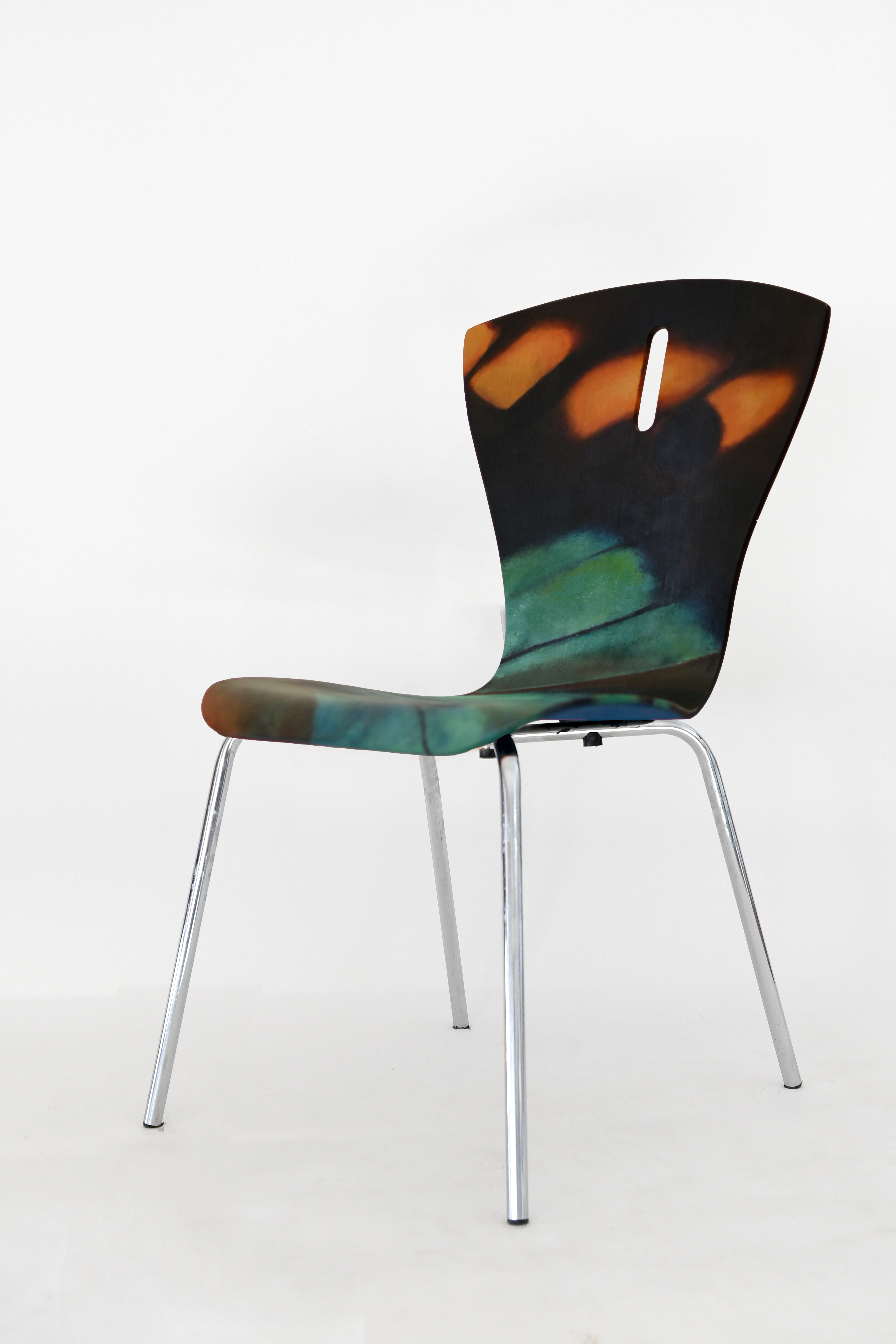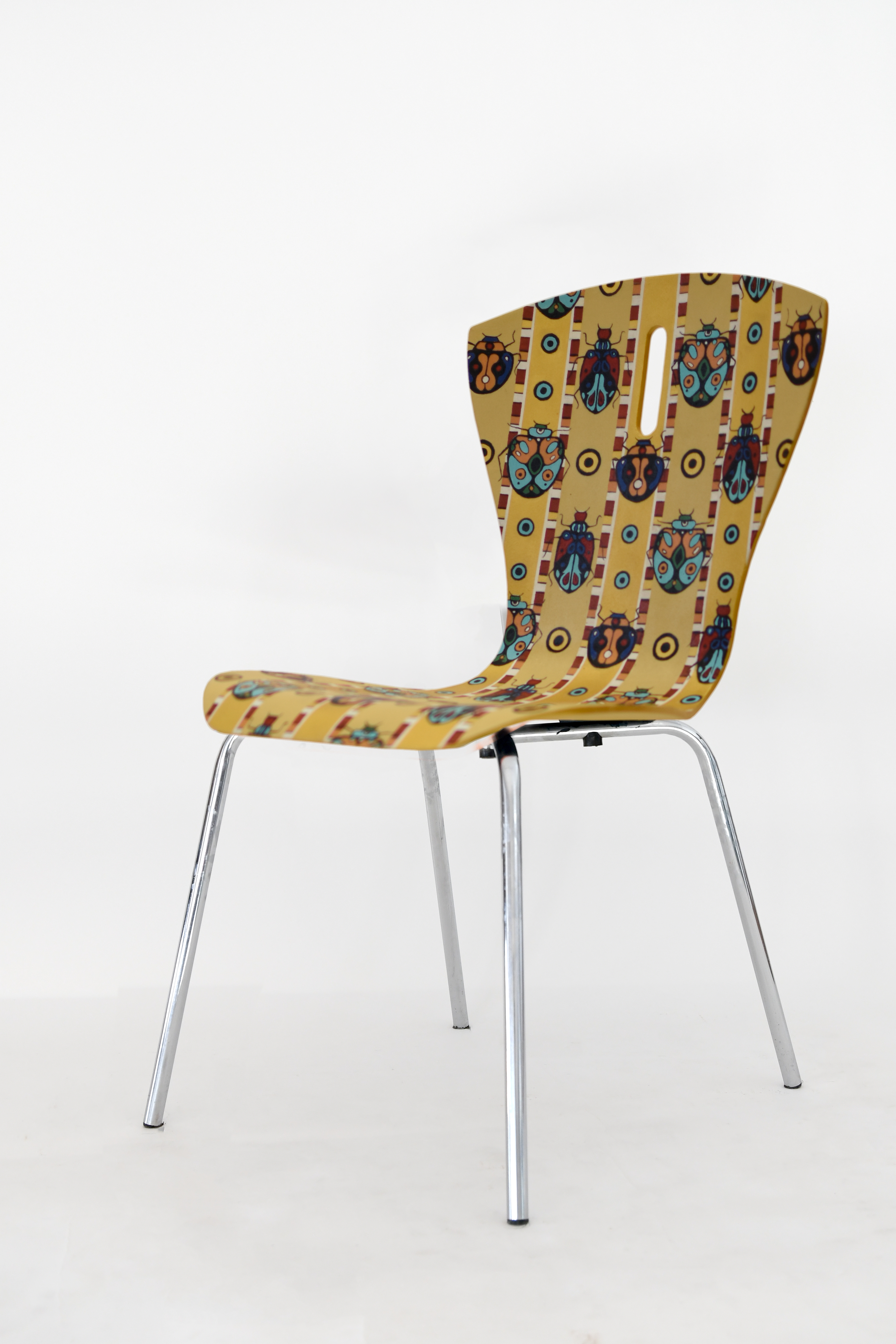 Autorami i autorkami niepowtarzalnych wzorów są uczniowie i uczennice klas 3. Projekty nowej oprawy artystycznej krzeseł powstały na zajęciach podstaw projektowania, prowadzonych przez p. Iwonę Korus.