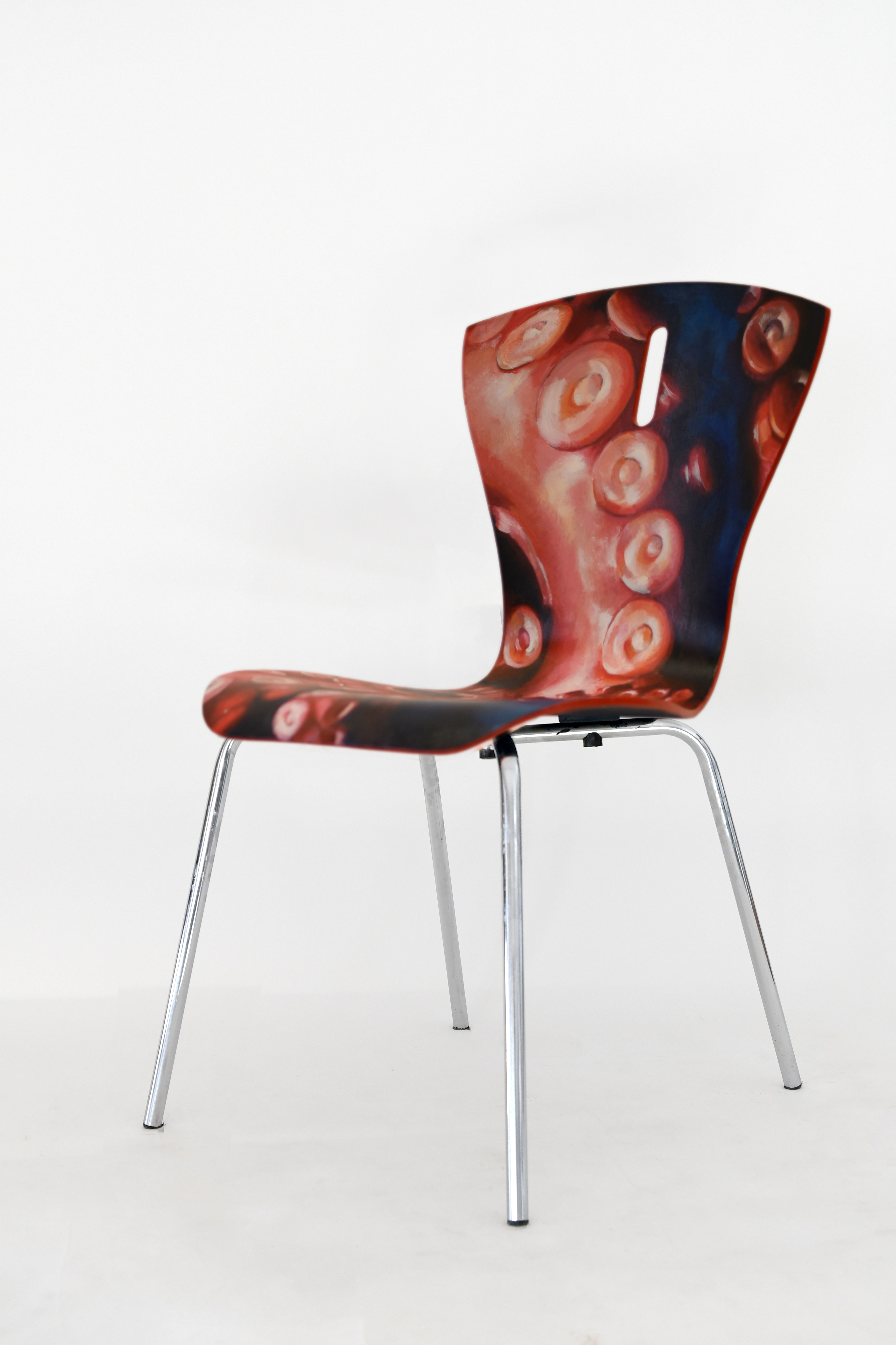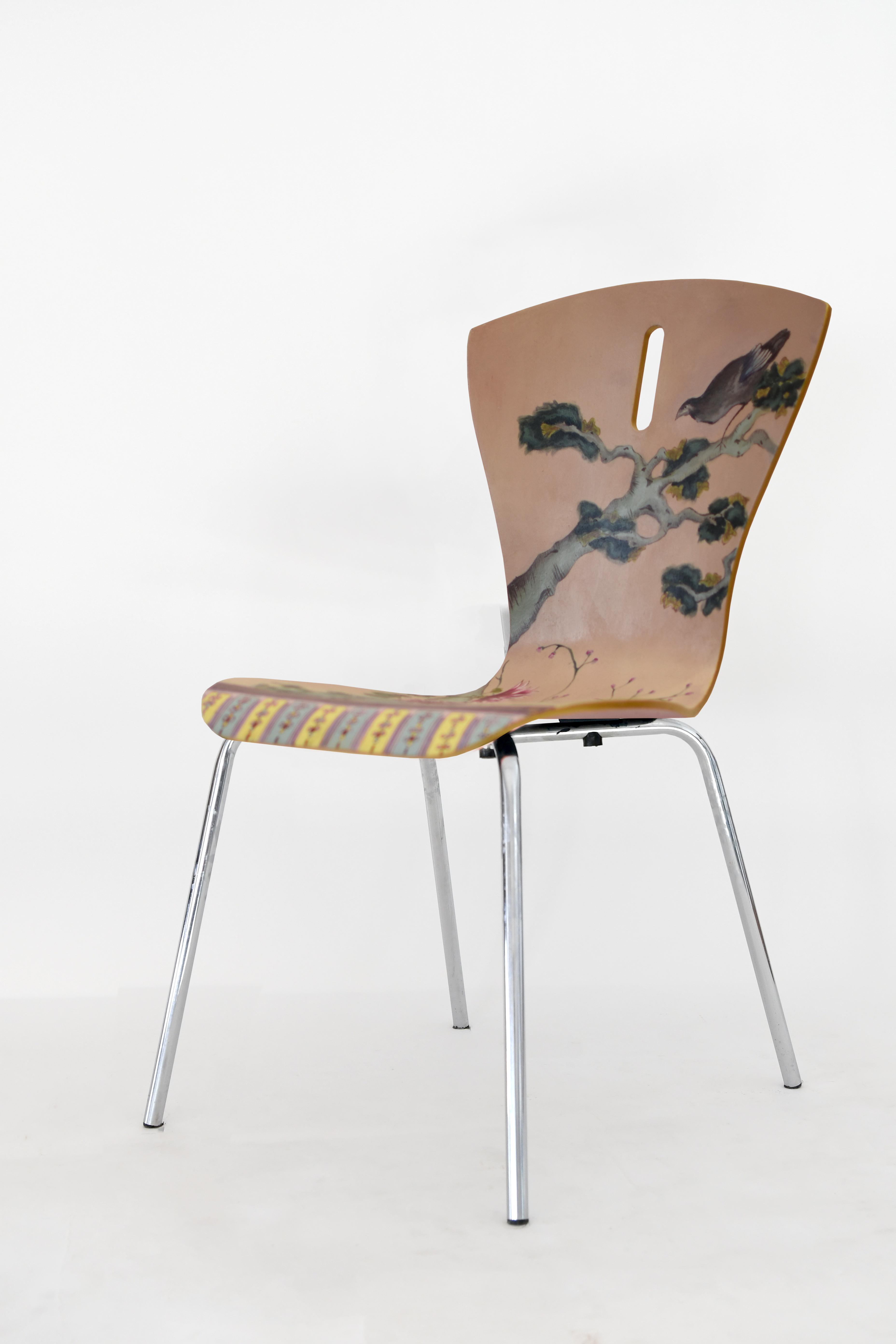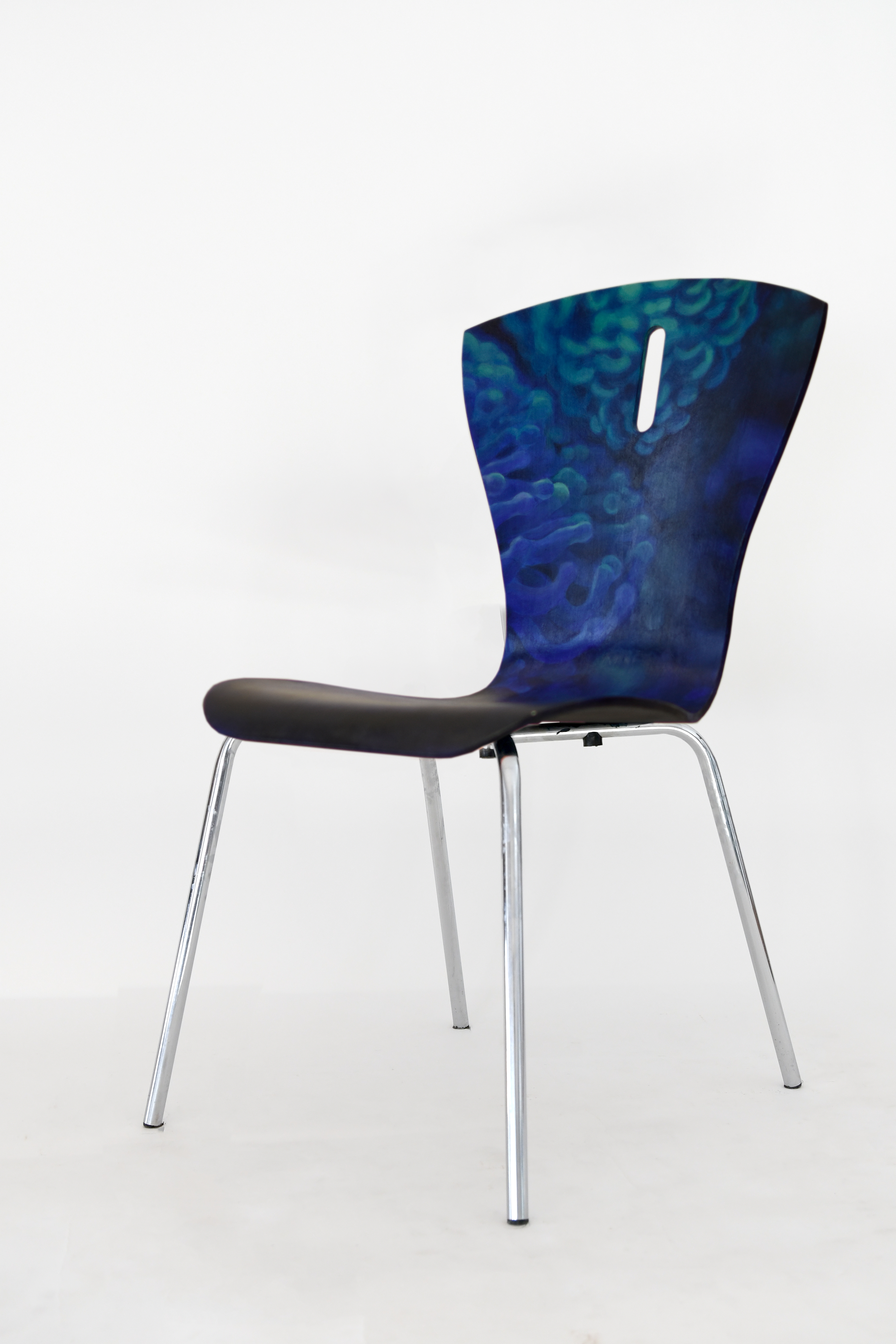 Autorami i autorkami niepowtarzalnych wzorów są uczniowie i uczennice klas 3. Projekty nowej oprawy artystycznej krzeseł powstały na zajęciach podstaw projektowania, prowadzonych przez p. Iwonę Korus.