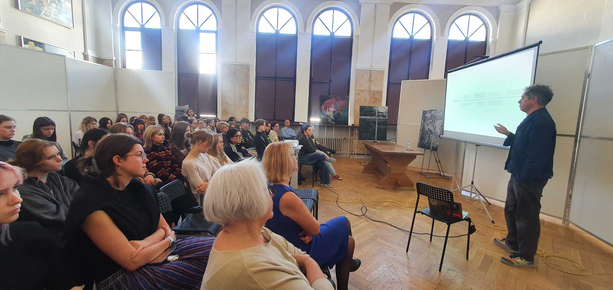 Dnia 13. października 2022 r. w auli szkoły odbyło się spotkanie z absolwentem naszej szkoły Adamem Witkowskim. Adam Witkowski mieszka i pracuje w Gdańsku. W latach 1998-2004 studiował na Wydziale Malarstwa Akademii Sztuk Pięknych w Gdańsku. Od 2007 wykłada w Akademii Sztuk Pięknych w Gdańsku w Pracowni Grafiki Multimedialnej. Zajmuje się malarstwem, grafiką, tworzy instalacje z użyciem wideo oraz dźwięku i muzyki, a także projekty radiowe, muzykę teatralną, filmową. Spotkanie było niezwykle inspirujące i cieszyło się dużym zainteresowaniem wśród uczniów.