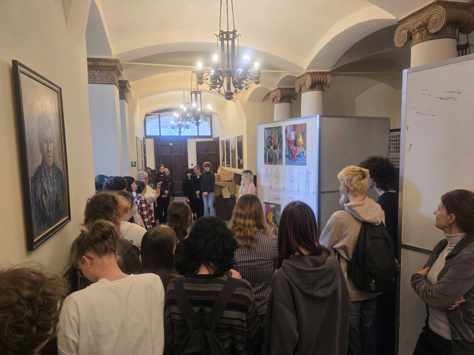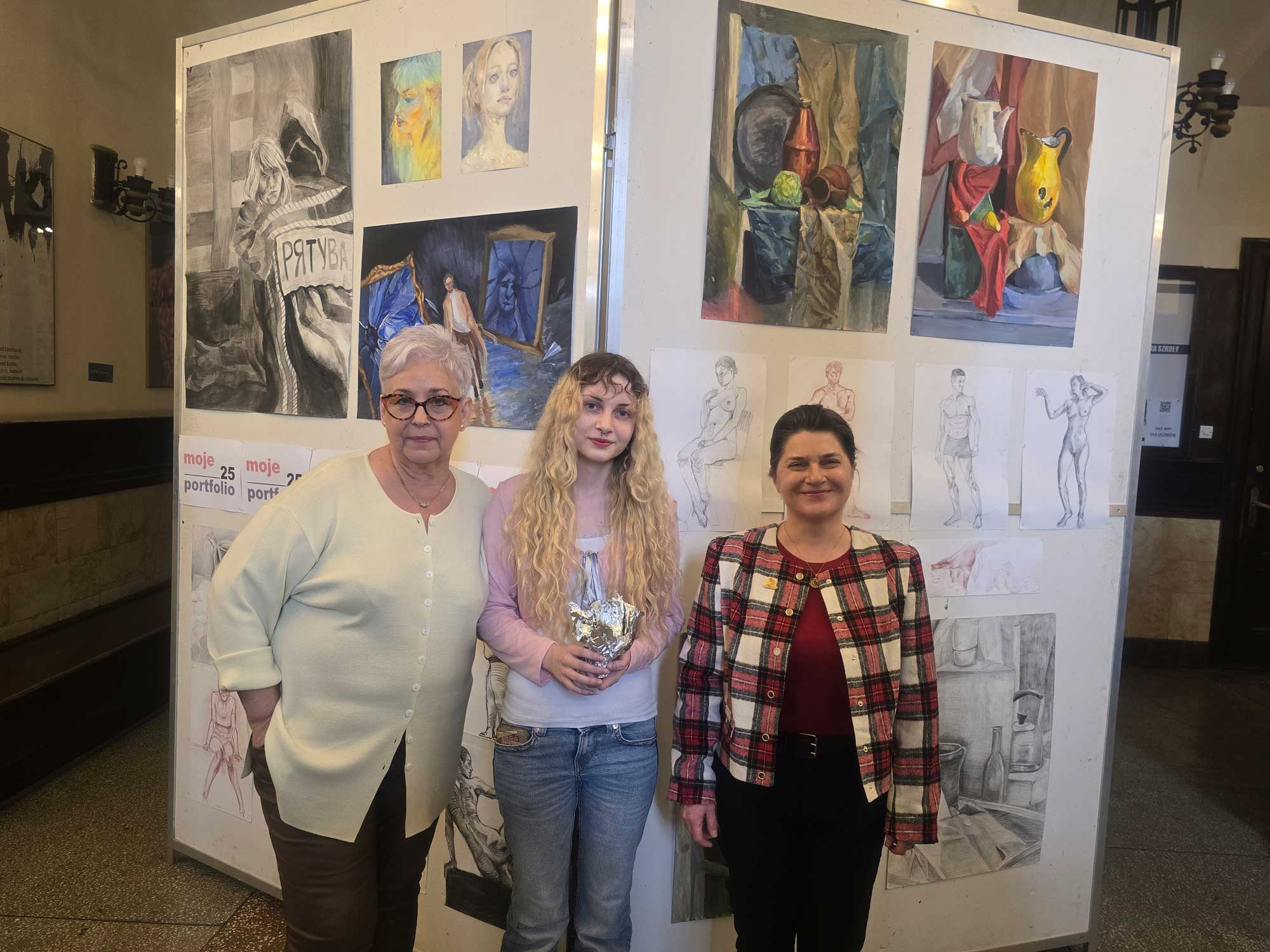 Autorka, Svitlana Mykhailova jest uczennicą klasy IIa w pracowni Małgorzaty Maciejewskiej. Prace które prezentuje powstały na przestrzeni dwóch ostatnich lat. Svitlana z dużą swobodą wyczuciem kolorystycznym i wrażliwością porusza się w rysunkowej i malarskiej materii. Chociaż jest dopiero na początku swojej drogi artystycznej , w sposób bardzo dojrzały operuje kreską a szkice postaci wychodzące spod jej ręki emanują profesjonalizmem. Autorka ma duże predyspozycje do budowania kompozycji figuralnych, portretów . Odwaga i dbałość o detal są bardzo widoczne w budowaniu obrazu. Z niewiarygodną wręcz ekspresją oddaje świat natury. Czyste barwy i spójność kolorystyczna nadają pracom wyjątkowy charakter. Tematyka jest wynikiem wnikliwej obserwacji natury, co w połączeniu ze sprawnością manualną gwarantuje wysoki poziom prac. Oglądamy głównie martwe natury oraz kompozycje figuralne. Widać, że technika rysunkowa jak i malarska przynosi autorce wiele satysfakcji. Życzymy Svitlanie jeszcze wielu sukcesów w pracy artystycznej w konkursach i wystawach.