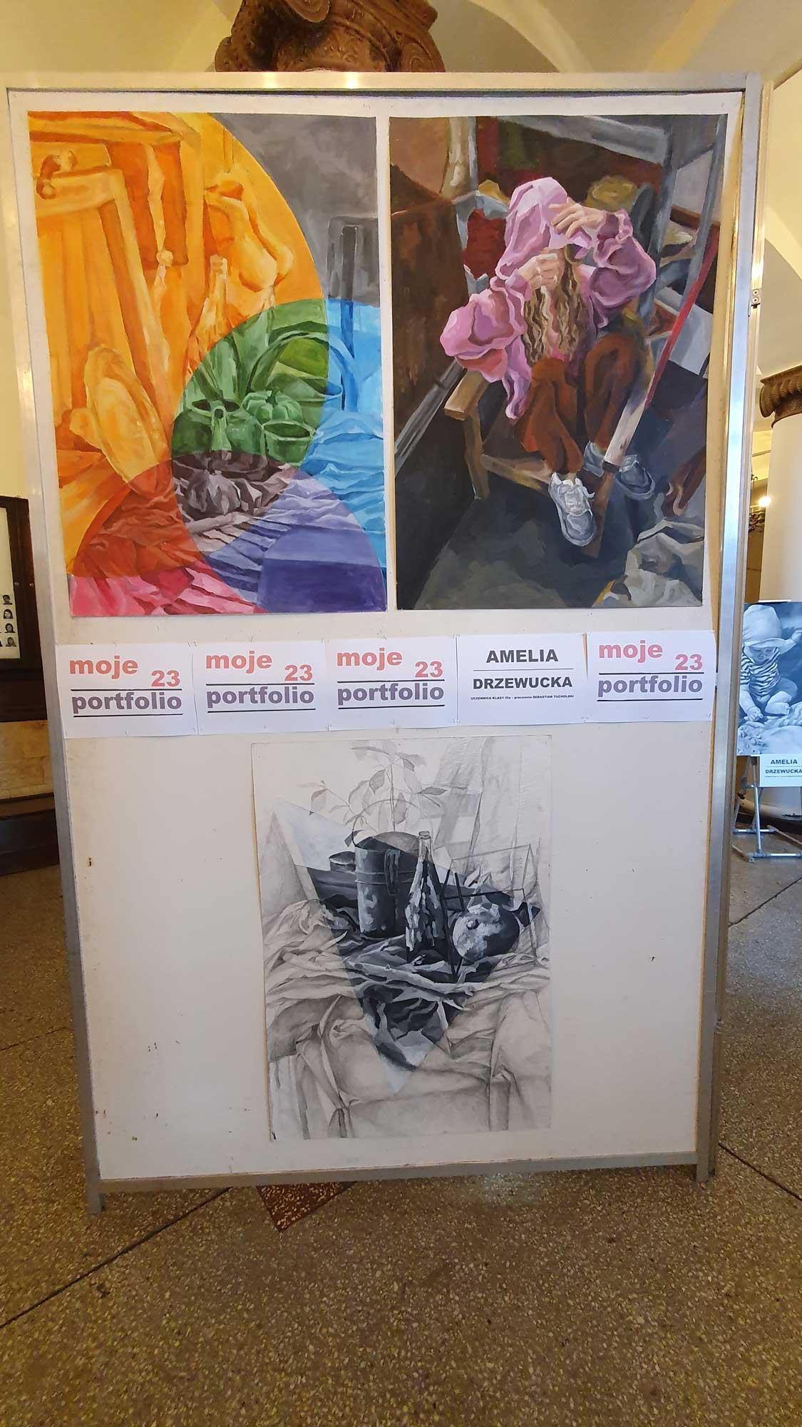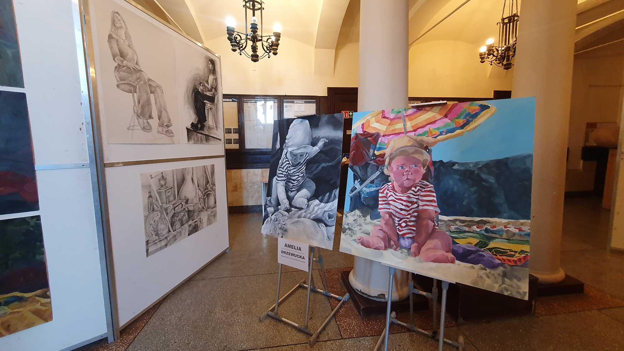 Autorka ,Amelia Drzewucka jest uczennicą klasy III w pracowni Sebastiana Tucholskiego. Prace które prezentuje powstały na przestrzeni ostatniego etapu nauki. Amelka z dużą swobodą, wyczuciem kolorystycznym i wrażliwością porusza się przede wszystkim w malarskiej materii. Odwaga i dbałość o detal są bardzo widoczne w budowaniu obrazu. Z niewiarygodną wręcz precyzją wchodzi w świat natury. Czysta kolorystyka i duży potencjał nadają pracom wyjątkowy charakter. Tematyka jest głownie wynikiem sprawnej obserwacji natury, co w połączeniu ze sprawnością manualną gwarantuje wysoki poziom prac. Amelka pokazuje oprócz malarstwa także prace rysunkowe. Martwe natury, kompozycje figuralne oraz sposób kadrowania, świadczą o kreatywnym podejściu do pracy. Autorka poszukuje i widać, że każda technika przynosi jej wiele satysfakcji. Uczennica we wszystkich formach wypowiedzi artystycznej czuje się komfortowo i są one bardzo spójne. Życzymy Amelce jeszcze większej satysfakcji z wykonywanych prac i powodzenia w konkursach i wystawach. Prace możemy oglądać do końca roku szkolnego, zapraszamy.