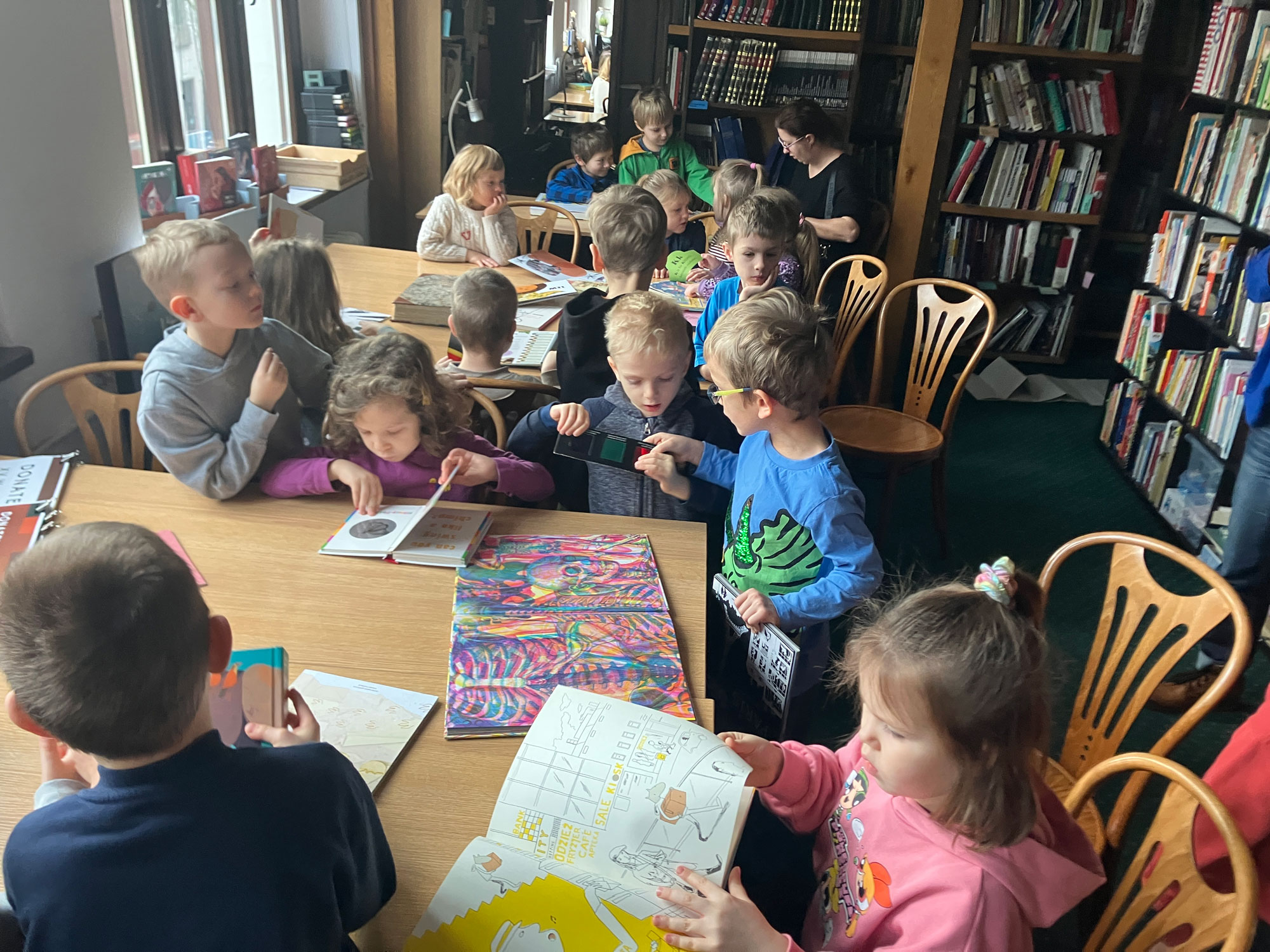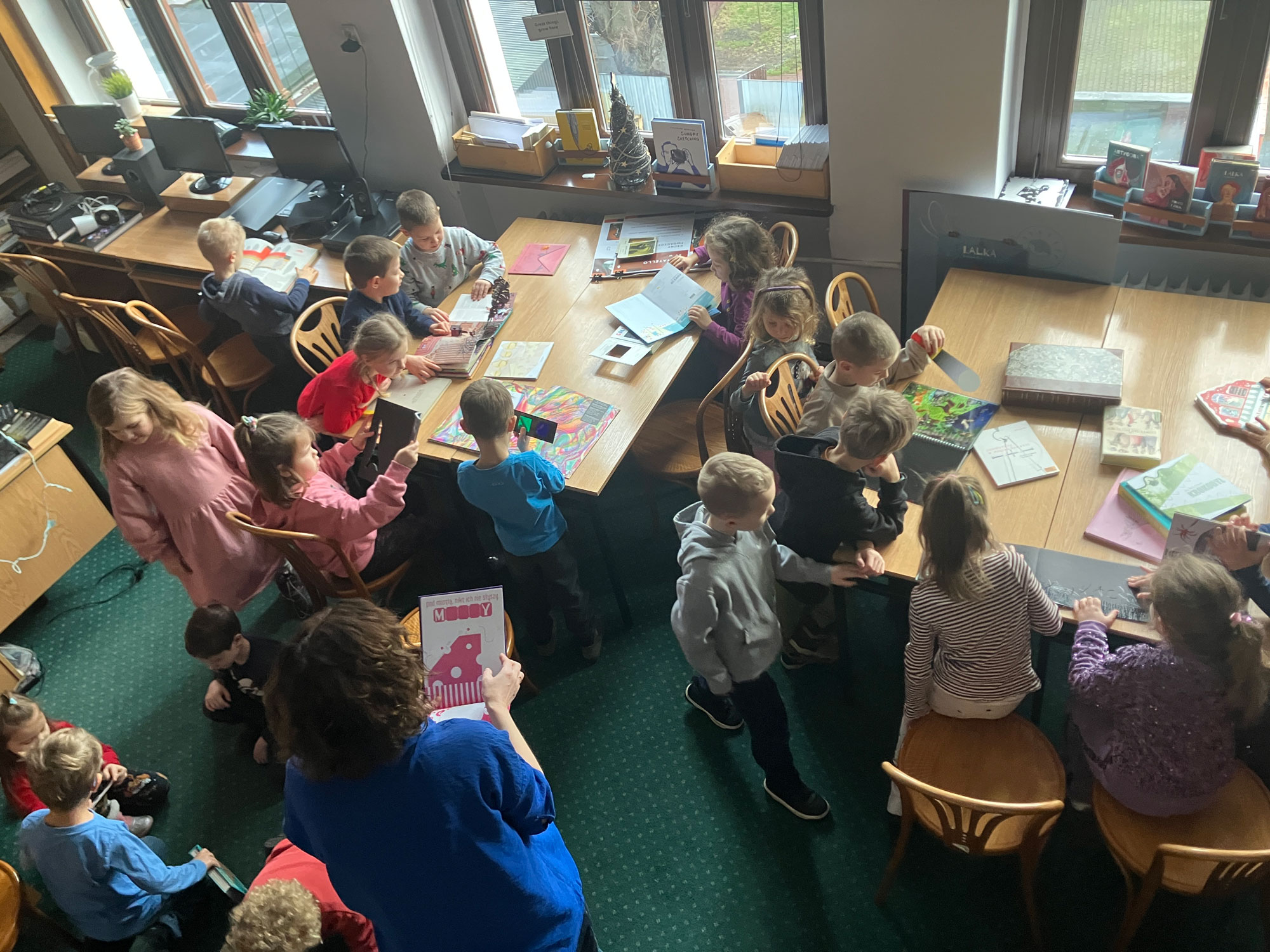 19 grudnia 2024 r. gościliśmy dzieci z Niepublicznego Przedszkola „Tęcza”. Dzieci nie tylko wykonały pracę graficzną, która na razie jest tajemnicą, ale również zwiedziły szkołę w tym naszą magiczną bibliotekę!!! :)