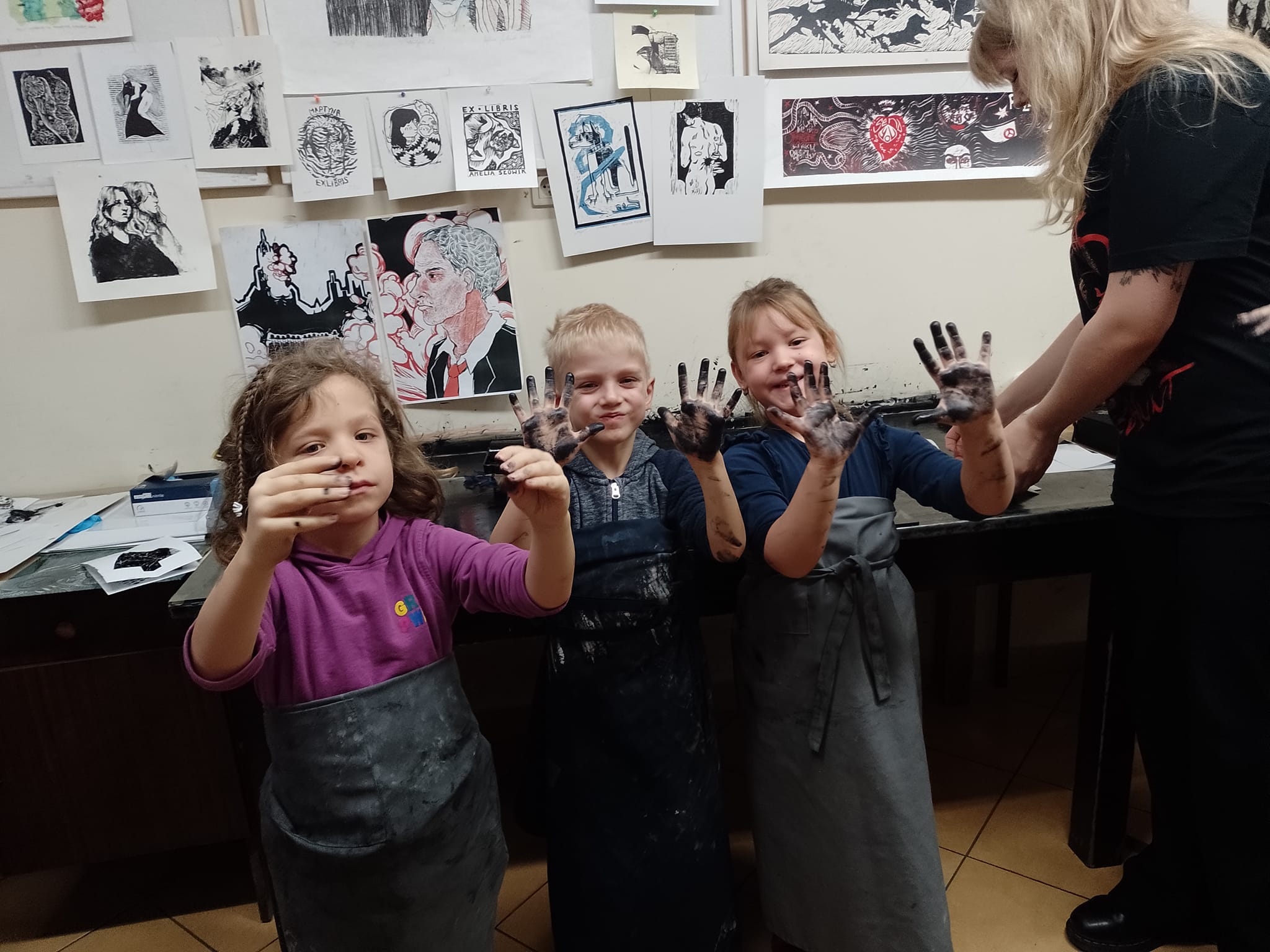 Bardzo dziękuję Dominice Baturo, Wiktorii Kustosz, Józefowi Bieleckiemu, Natalii Maciejczak z klasy 4 z technik druku artystycznego za ogromne wsparcie podczas warsztatów!