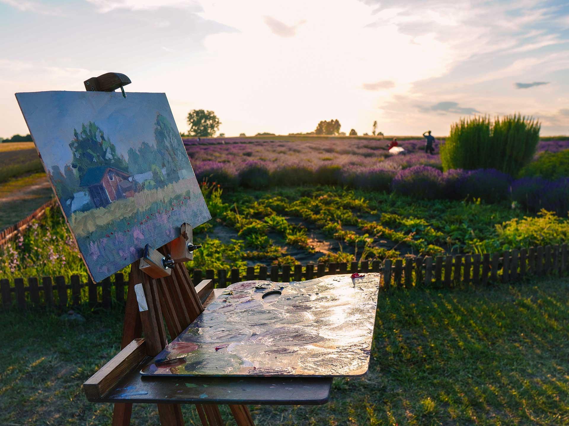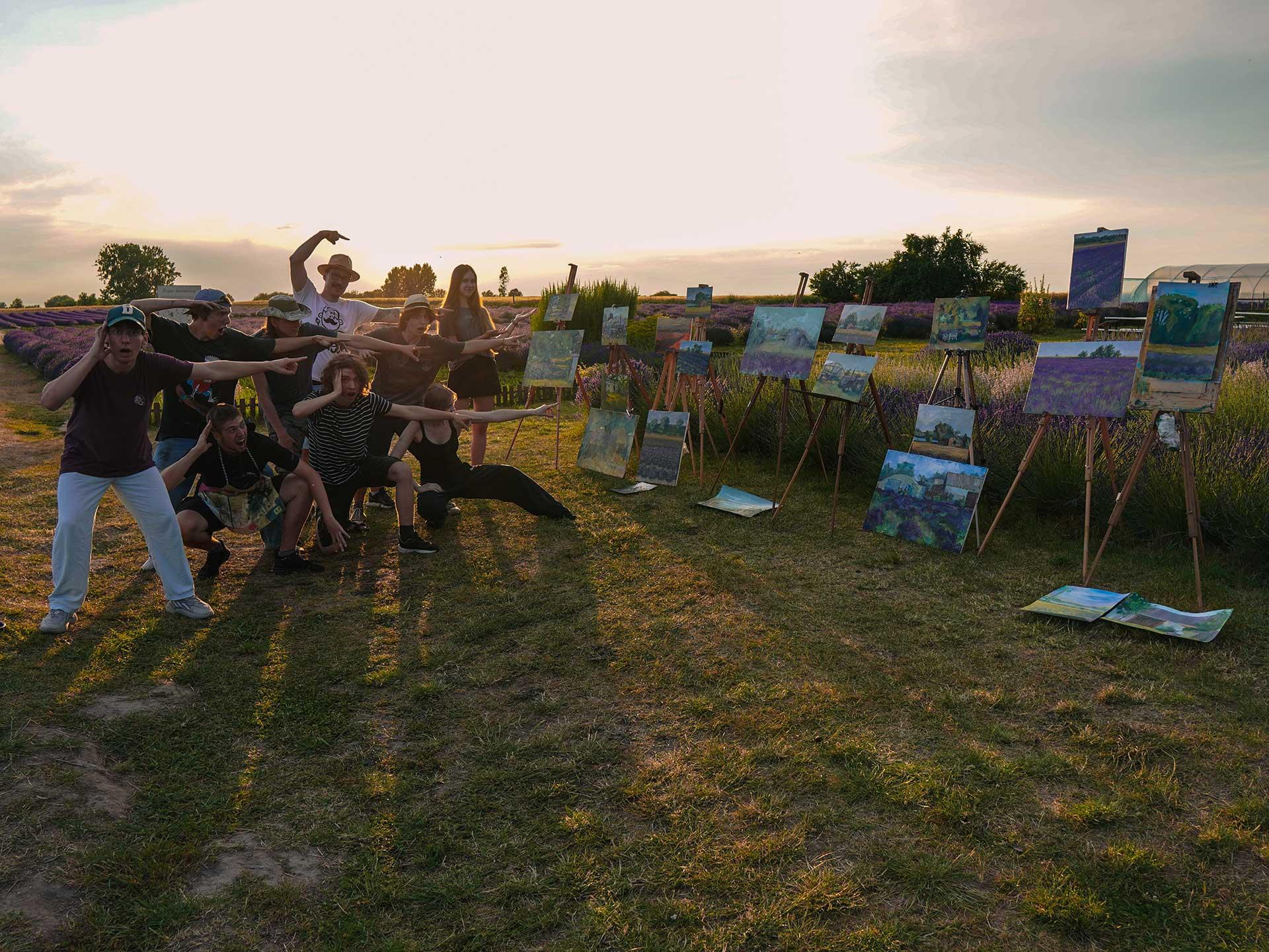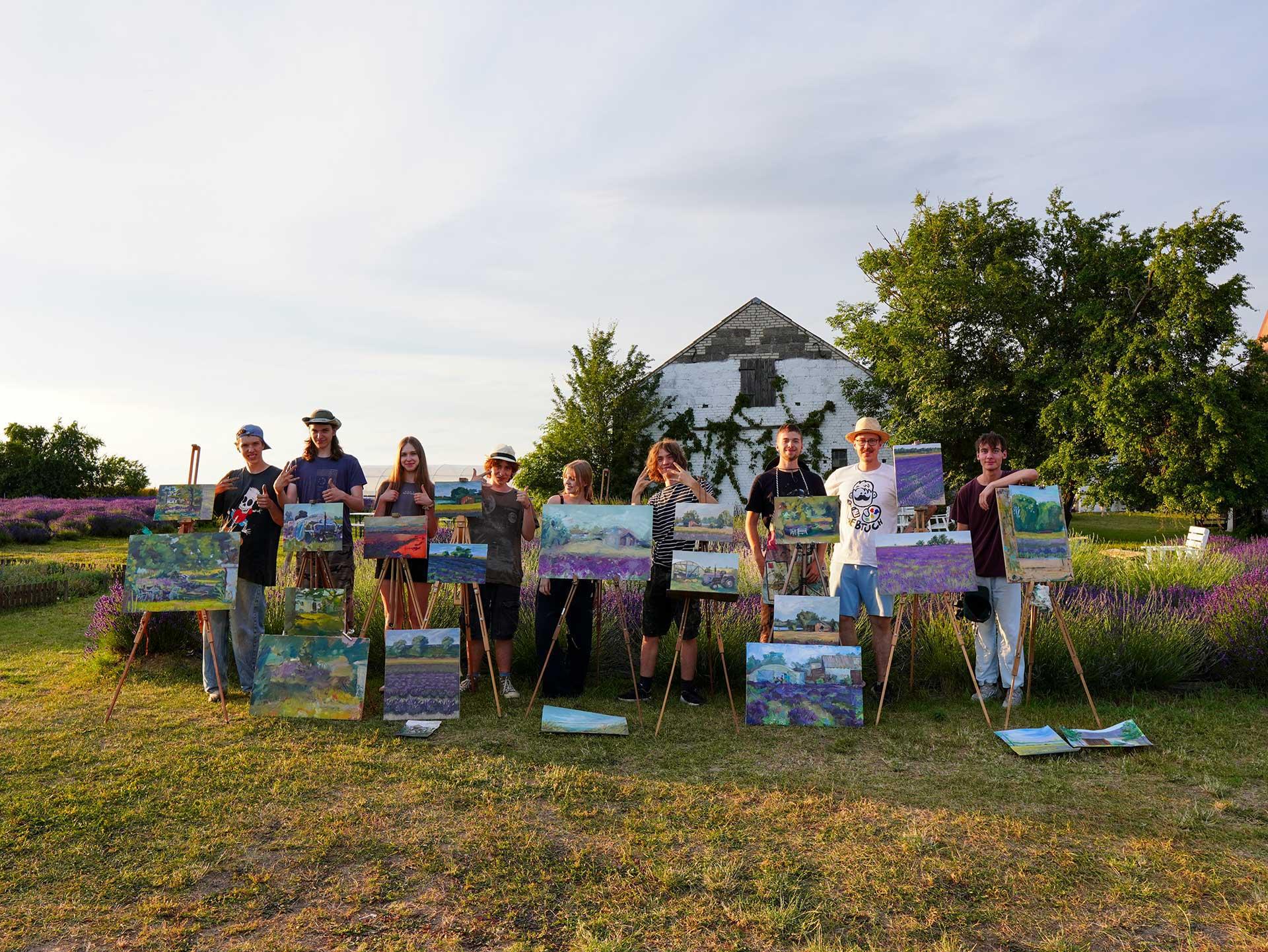 Ośmioro uczniów wzięło udział w dodatkowym plenerze malarskim na polu lawendy pod opieką Pana Sebastiana Tucholskiego.
