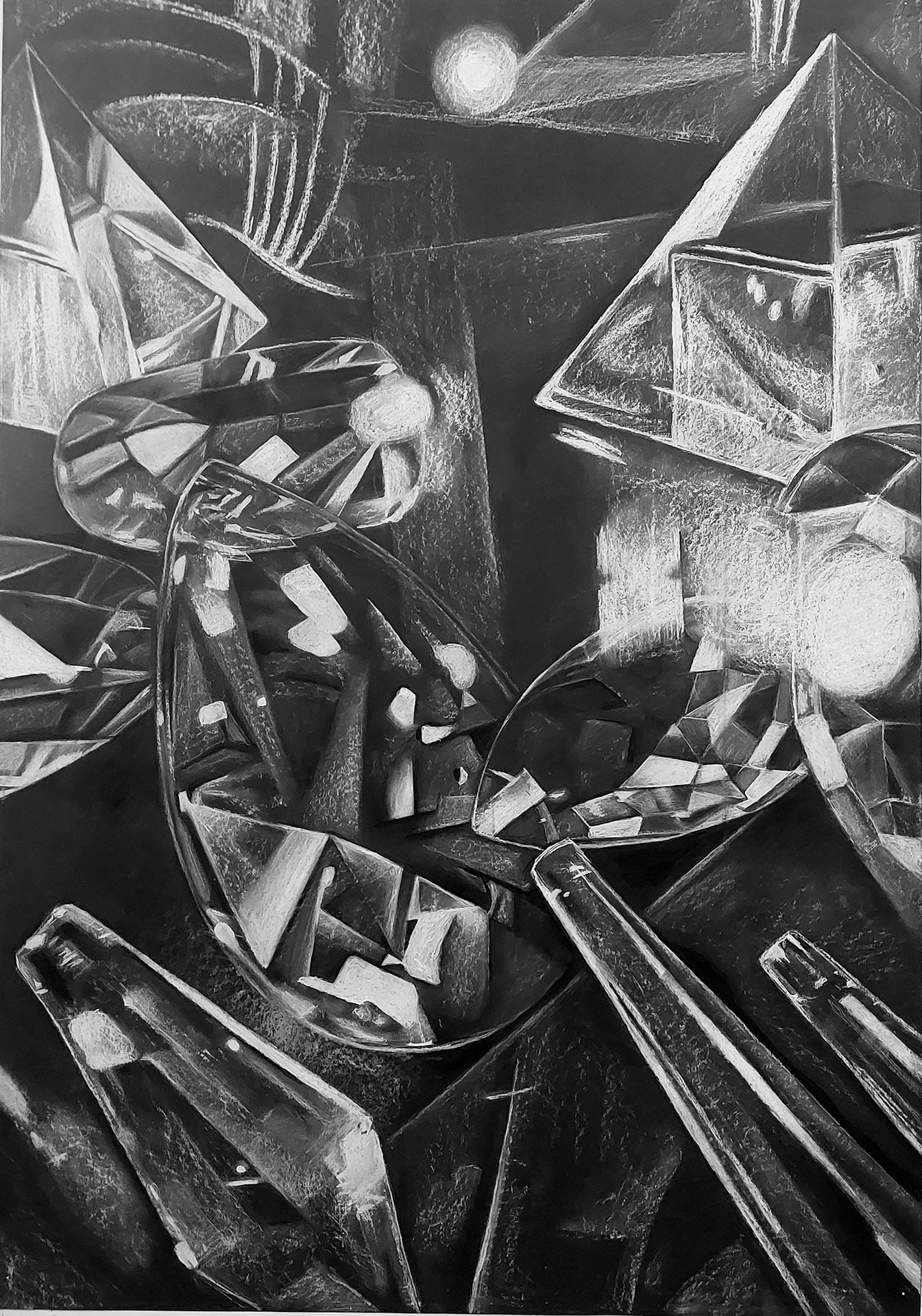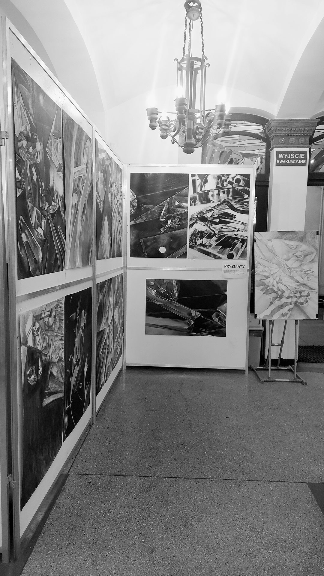 „PRYZMATY” to wewnątrzszkolna wystawa prac uczniów klas trzecich, wykonanych w roku szkolnym 2023/2024 w pracowniach rysunku i malarstwa prof. M. Maciejewskiej i S. Tucholskiego. Wystawę można podziwiać od stycznia aż do połowy marca na parterze szkoły.