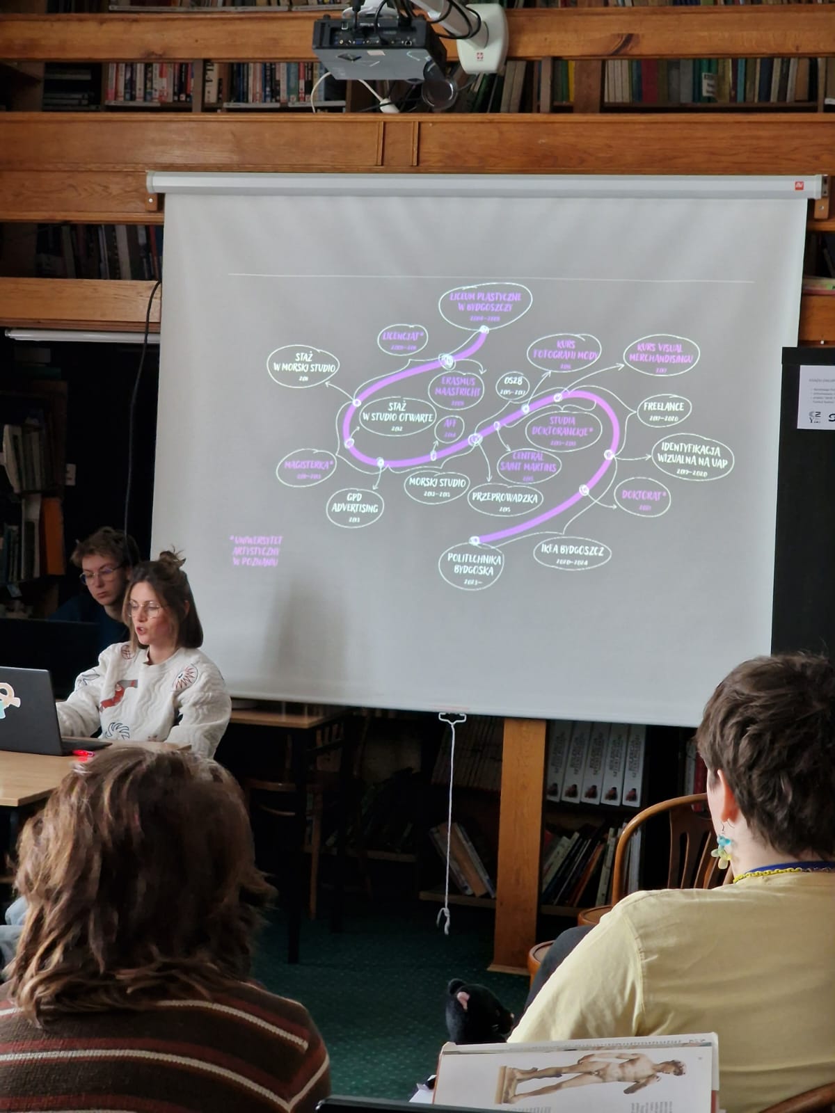 Po raz kolejny w tym roku odbyło się spotkanie z absolwentką Julią Lewandowską. Julia Lewandowska ukończyła Uniwersytet Artystyczny im. Magdaleny Abakanowicz w Poznaniu. Obecnie pracuje na Politechnice Bydgoskiej na Wydziale Komunikacji Wizualnej na stanowisku adiunkta. Julia w sposób bardzo interesujący opowiadała o studiach i pracy w agencjach reklamowych i pracy dydaktycznej na uczelni.
