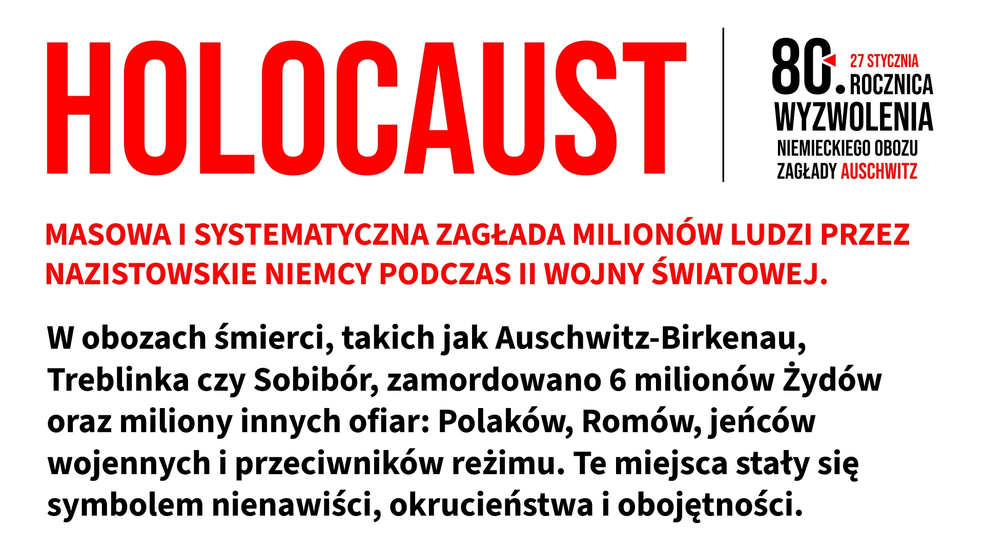 27 stycznia - 80. rocznica wyzwolenia niemieckiego obozu zagłady Auschwitz