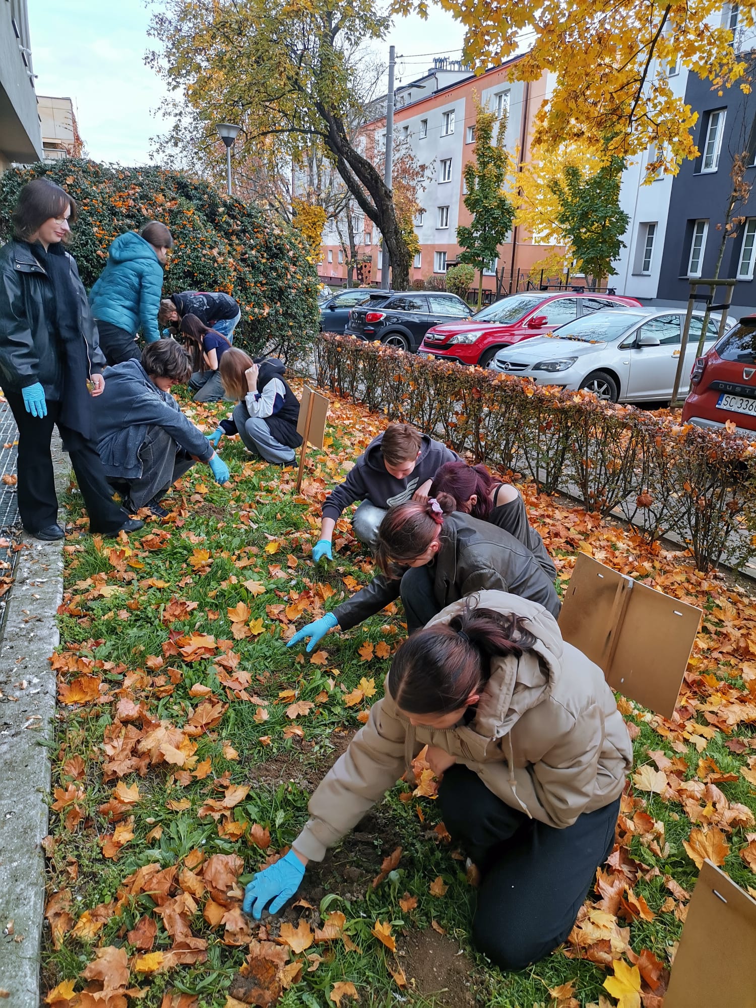 W ramach Kampanii Żonkilowe Pola Nadziei 22.X.25 uczniowie PLASTYKA zasadzili cebulki żonkili przed budynkiem szkoły. Akcja ma na celu wsparcie pacjentów onkologicznych.