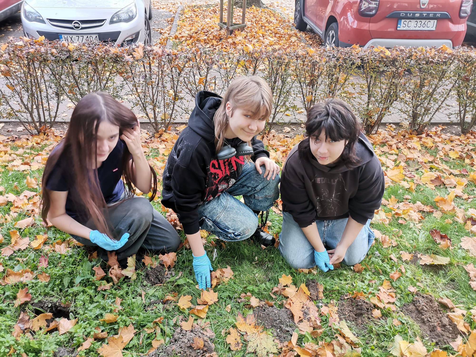 Uczniowie PLASTYKA zasadzili cebulki żonkili przed budynkiem szkoły