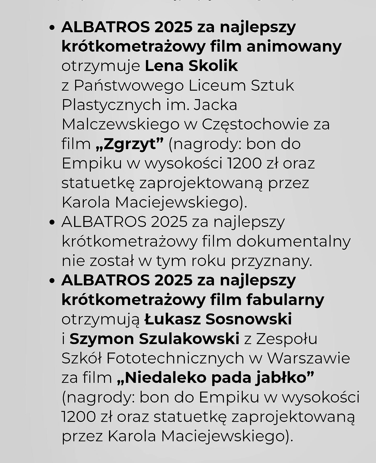 Lena Skolik otrzymała nagrodę "Albatros 2025" za najlepszy krótkometrażowy film animowany