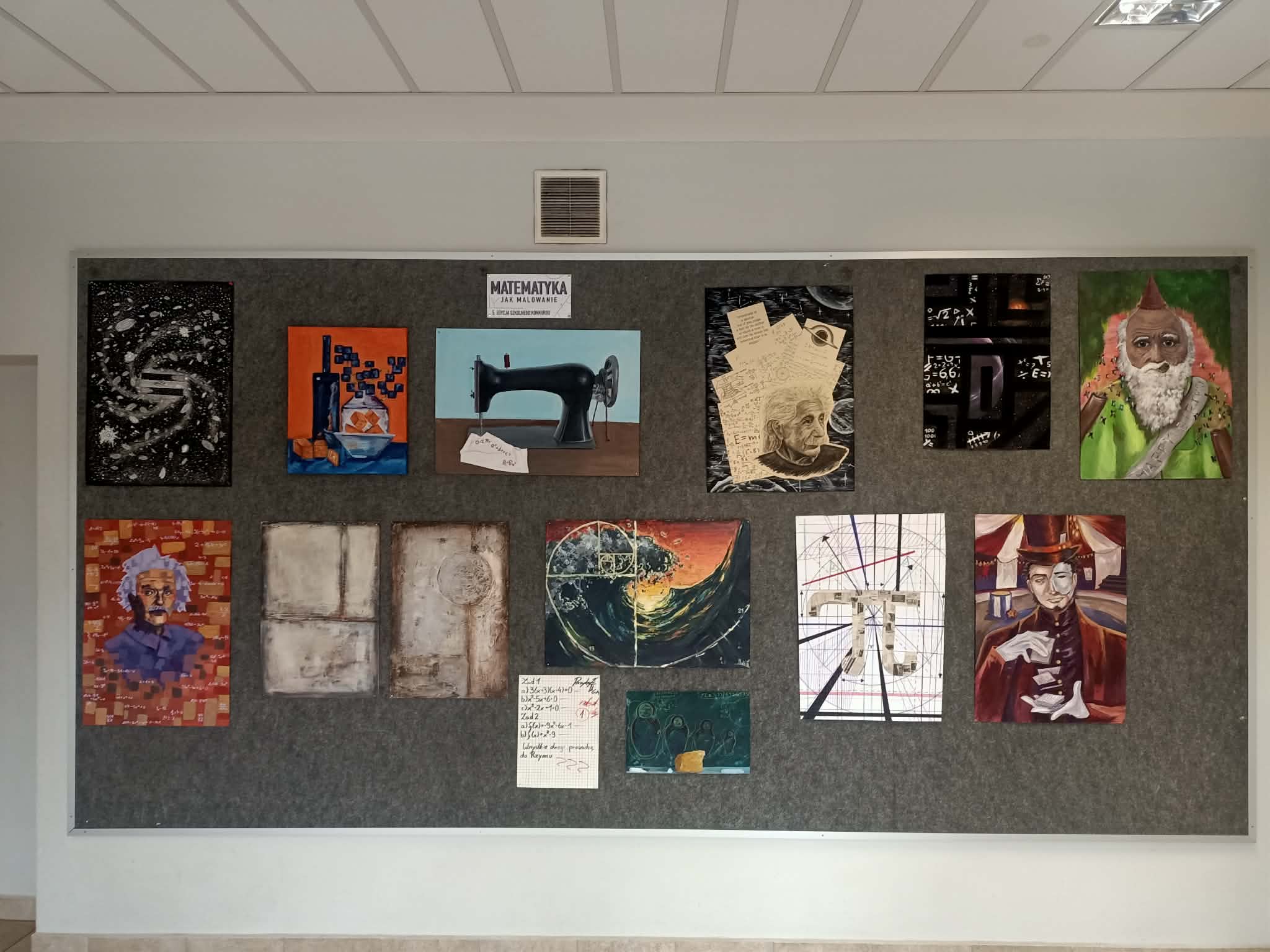 Na III piętrze szkoły można podziwiać prace uczestników 5. edycji Szkolnego Konkursu pt: ,,Matematyka jak malowanie”.
