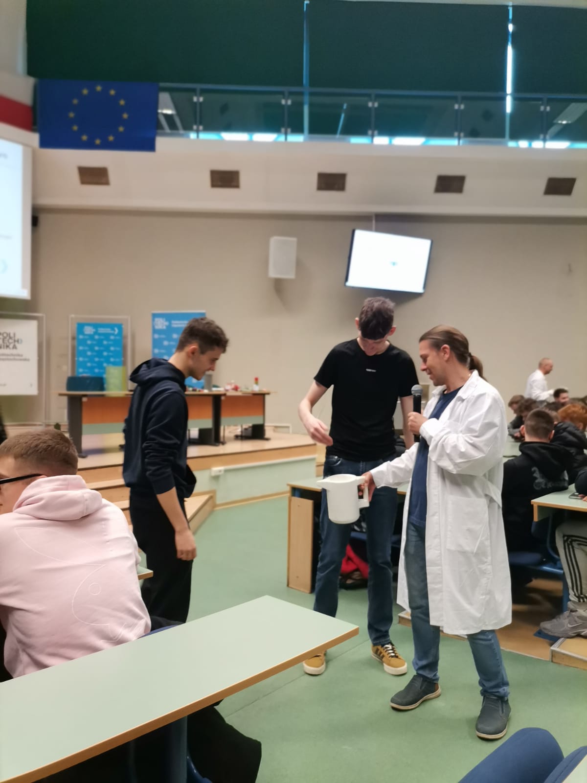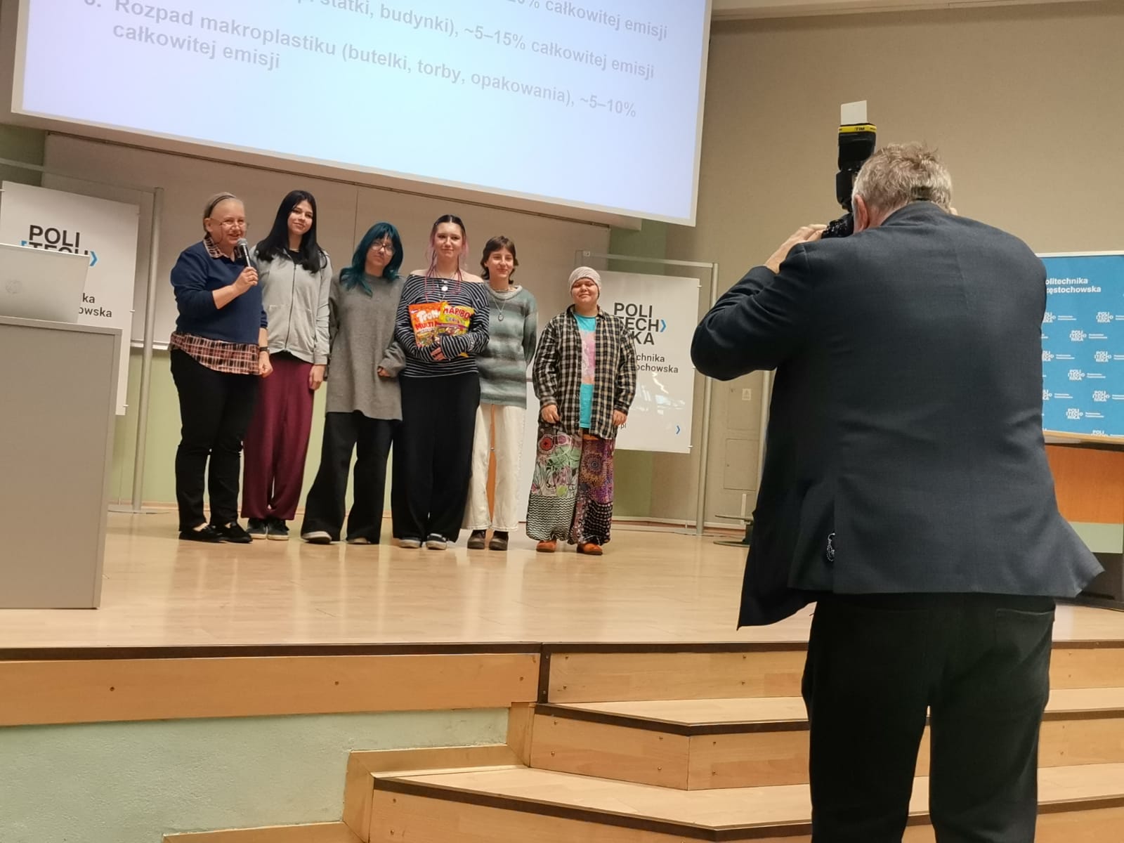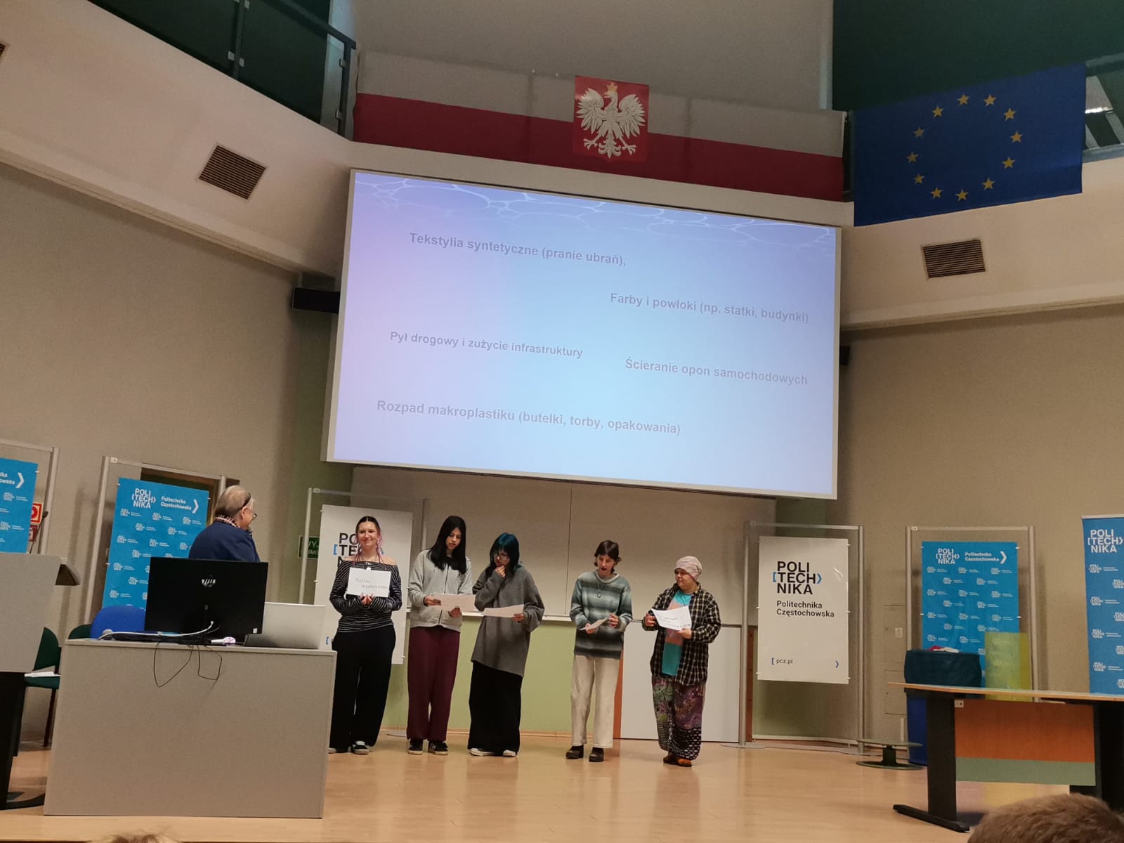 Jednocześnie gratulujemy uczennicom z klasy 1 jm odwagi i aktywnego udziału w konkursie dotyczącym mikroplastiku, który został przeprowadzony na scenie.