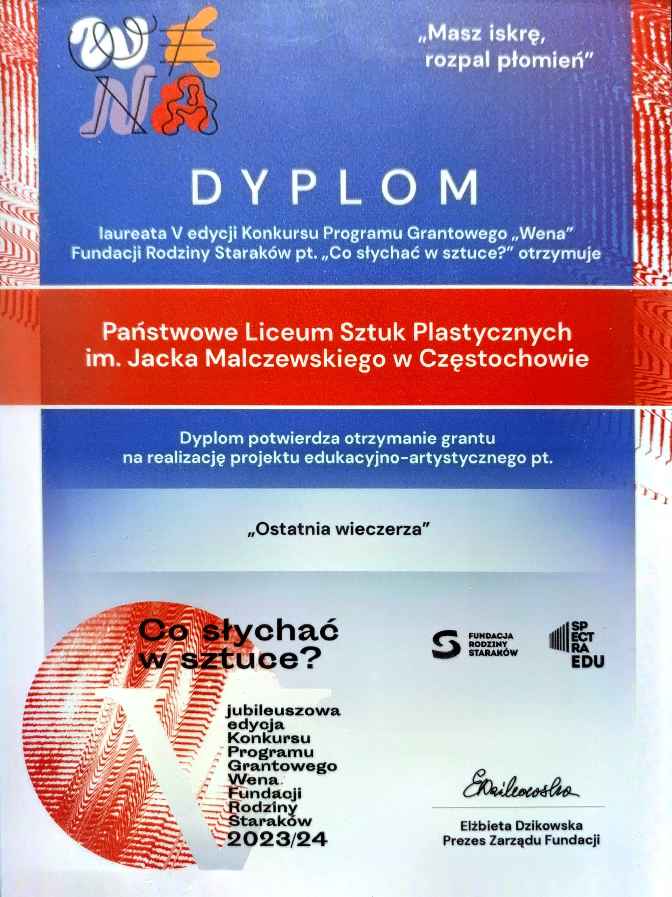 Będą kolejne odcinki po tej introdukcji! Projekt podejmuje interdyscyplinarne działania twórcze grupy uczniów i pedagogów, inspirowanych pracą Leonarda da Vinici „Ostatnia wieczerza” , jak również licznymi interpretacjami wspomnianego dzieła w sztuce współczesnej. Działania twórcze w projekcie dotyczą różnych środków przekazu wizualnego, jak: instalacja, malarstwo, rzeźba, fotografia, nie pomijając cyfrowych możliwości, jakie stwarza obecnie komputer, dostęp do internetu oraz AI.
