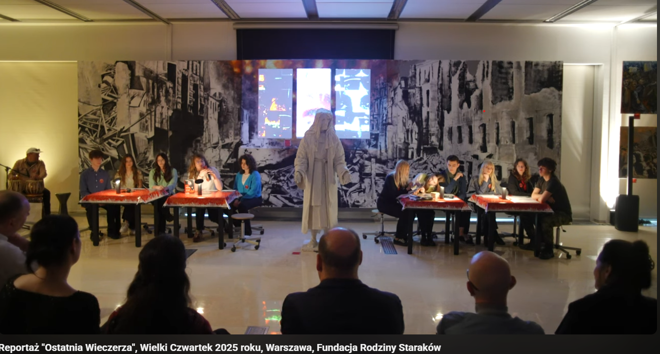 Polecamy obejrzenie reportażu w reżyserii Magdy Matfijow z wydarzenia „Ostatnia Wieczerza” – spektaklu i wystawy przygotowanych przez Państwowe Liceum Sztuk Plastycznych im. Jacka Malczewskiego w Częstochowie. Performance odbył się w siedzibie Fundacji Rodziny Staraków w Wielki Czwartek 2025 roku.