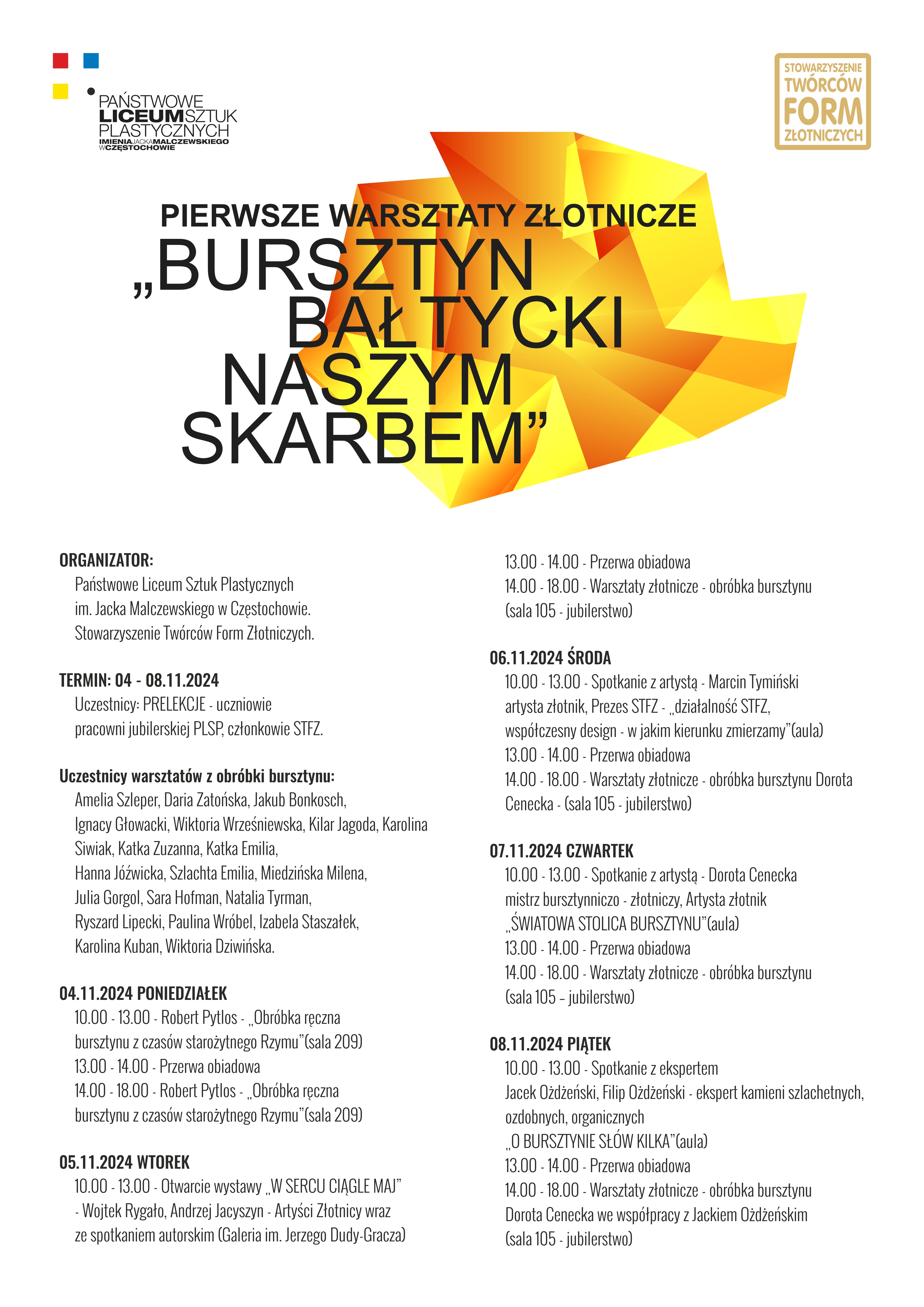 Szczegółowy plan zajęć znajduje się na plakacie warsztatów złotniczych KLIKNIJ TUTAJ