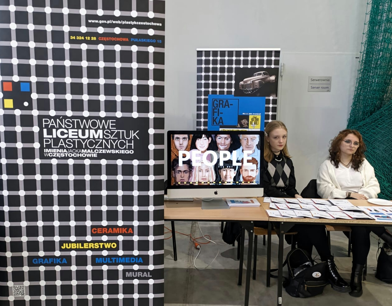 Naszą szkołę reprezentowały uczennice Judyta Makuch i Eliza Szczurek wraz z nauczycielem Januszem Konieckim. Udział w targach był okazją do zaprezentowania oferty edukacyjnej szkoły, a także do bezpośrednich spotkań z uczniami. Nasze reprezentantki oraz nauczyciel odbyli wiele rozmów, odpowiadając na pytania dotyczące nauki w Częstochowskim Plastyku i specyfiki kształcenia artystycznego.