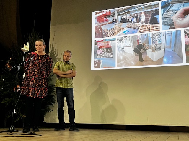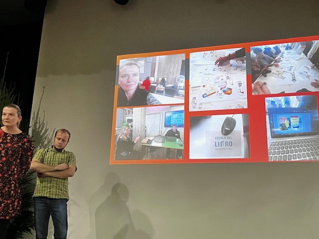 Tego samego dnia, w dalszej części, wystąpili także Anna Trojanowska-Olas i Karol Nowakowski, nauczyciele którzy brali udział w projekcie Job Shadowing w dniach 13-17 listopada 2023 roku w Urbino w Scuola del Libro. Nauczyciele opowiadali o strukturze nauczania w szkole, o udziale w obserwowanych lekcjach, o atmosferze i dobrostanie uczniów. Włoscy nauczyciele oraz uczniowie z zaangażowaniem opowiadali o realiach nauki w ich szkole oraz pomagali w zrozumieniu działalności poszczególnych pracowni.