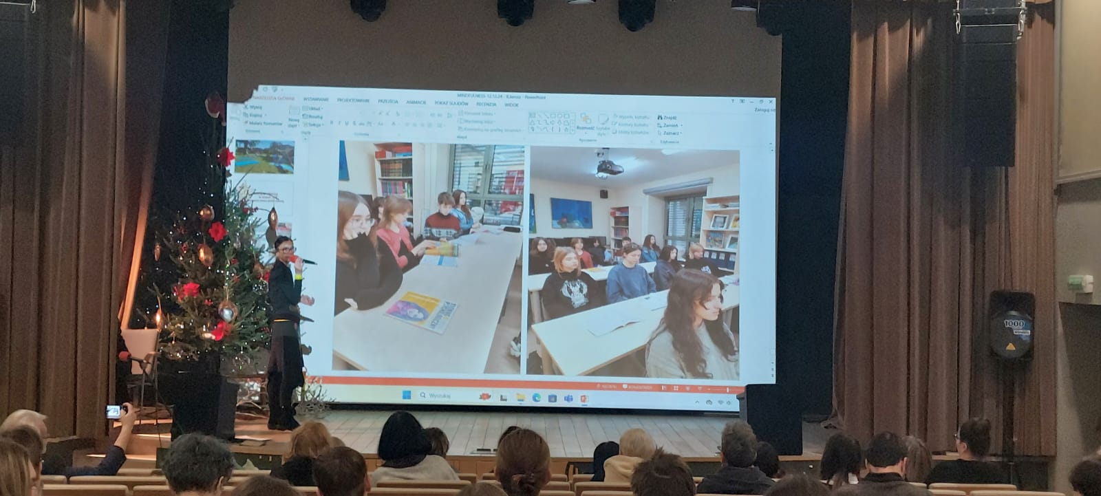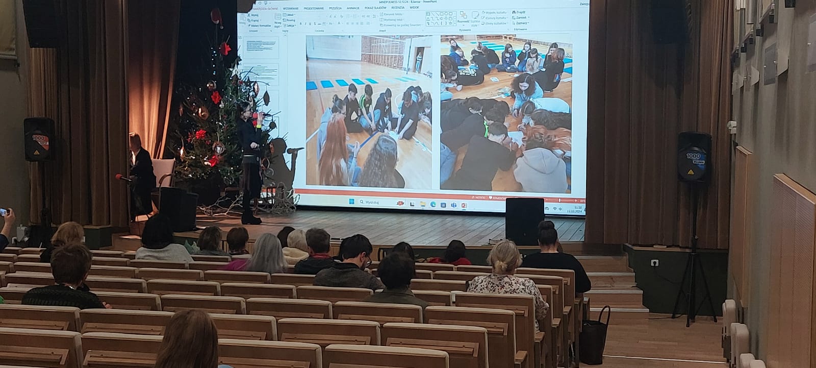 - Mindfulness, czyli uważność osiągana w rozwoju osobistym poprzez umiejętności radzenia sobie ze stresem, tremą, wypaleniem było drugim zagadnieniem tego dnia. Przedstawiono dobre praktyki wypracowane w ramach realizacji programu Erasmus + pt. "Silna i kompetentna młodzież w postpandemicznym i kryzysowym świecie" z uwzględnieniem priorytetów MEN na r.szk. 2024/ 2025 zawartych w polityce oświatowej państwa w zakresie wspierania dobrostanu uczniów i ich zdrowia psychicznego oraz rekomendacji wychowawczo - profilaktycznych CEA w zakresie profilaktyki zdrowia fizycznego uczniów szkół artystycznych. Pani Beata Jarosz - nauczyciel w PLSP w Częstochowie, przedstawiła prezentację pt. Mindfulness - metoda redukcji stresu oparta na uważności. Pani Beata Jarosz jest prowadzącą zajęcia oddechowe, treningi relaksacyjne oraz trening Mindfulness w ramach lekcji wychowania fizycznego w naszej szkole.