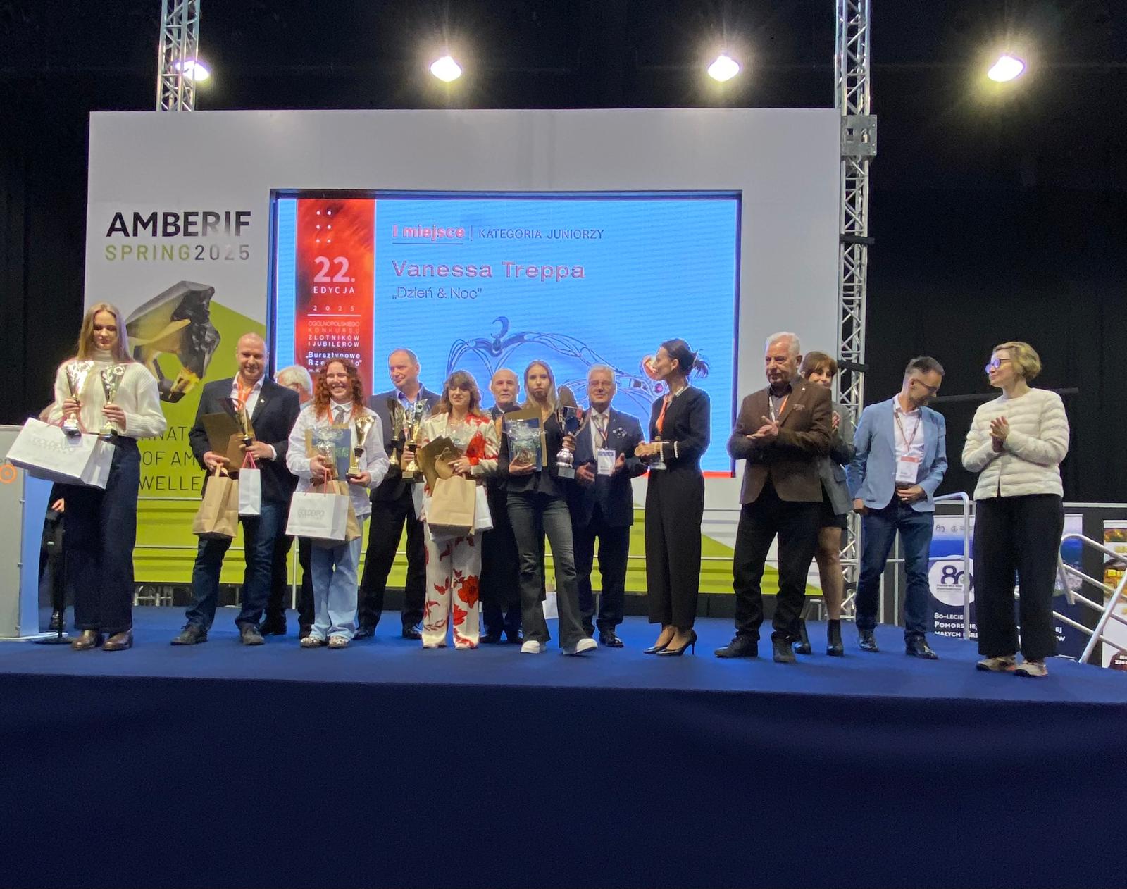 W dniach 11-14.03 nasi nauczyciele jubilerstwa Radosław Wójcik oraz Paweł Krzyszkowski wraz z panem dyrektorem Pawłem Kolmasem uczestniczyli w Targach „AMBERIF 2025”, gdzie promowali naszą szkołę. Podczas Targów odbyło się uroczyste wręczenie nagród w konkursie „Bursztynowe Rzemiosło” , którego tematem były „Bursztynowe kontrasty”.