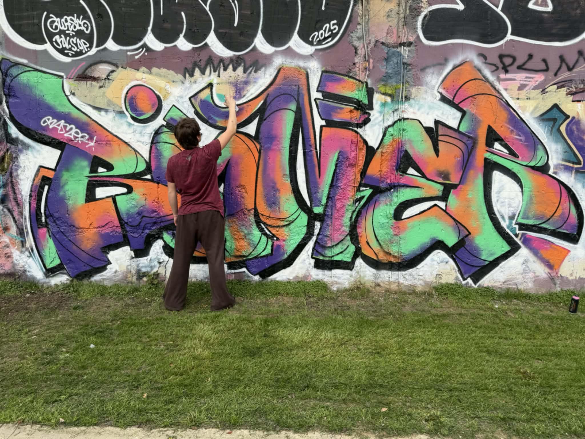 W parku Olek wykonał mural według swojego pomysłu. Resztę dnia spędziliśmy z wieloma różnymi przyjaciółmi z Turynu.