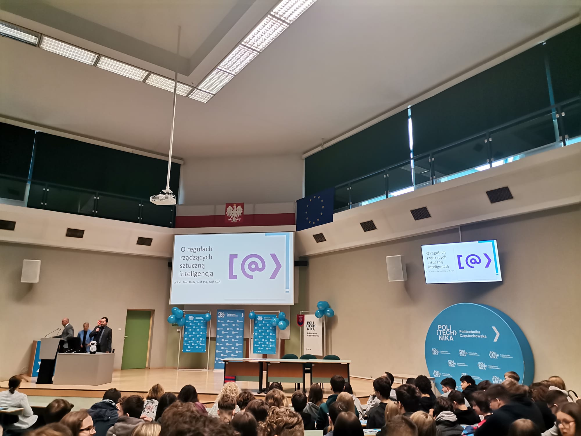 W Auli Wydziału Zarządzenia Politechniki Częstochowskiej odbyła się szesnasta inauguracja Częstochowskiego Uniwersytetu Młodzieżowego, wydarzenia, które zrodziło się w 2009 roku z inicjatywy władz rektorskich uczelni. W tegorocznej edycji, spotkania podzielone są na trzy cykle wykładów. Na każdym z tych cykli prezentowany jest dorobek naukowy oraz kierunki współczesnych badań. Oprócz tego oferowane są młodzieży zajęcia warsztatowe i laboratoryjne. Celem Częstochowskiego Uniwersytetu Młodzieżowego jest zachęcenie młodych ludzi do studiowania i rozwijania swoich pasji oraz zainteresowań na kierunkach inżynierskich i ekonomicznych. Uczniowie Plastyka z kl. I gm, pod opieką wychowawczyń: Pani Katarzyny Kot oraz Pani Beaty Jarosz w dn. 14. 03. 25 uczestniczyli w trzech wykładach Młodzieżowego Uniwersytetu Politechniki Częstochowskiej. Wykłady dotyczyły następujących tematów: "O regułach rządzących Sztuczną Inteligencją" (prowadzący Profesor Politechniki Częstochowskiej dr hab inż. P. Duda), "Robotyka w budownictwie przyszłości" (prowadzący inż. P. Palacz), "Odpowiedzialny klient, czyli jak się nie dać zmanipulować" (prowadzący dr S. Kowalski).