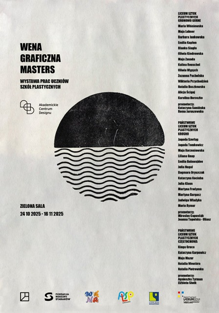 Pilotażowy Program „Wena Graficzna Masters” Fundacji Rodziny Staraków zakończył się wystawą w Akademickie Centrum Designu w Łodzi. Z PLSP przyjechały: Kinga Gruca, Katarzyna Karpowicz, Maja Mazur, Natalia Wewióra, Natalia Piotrowska oraz promotorki: Agnieszka Tyrman i Elżbieta Siwik
