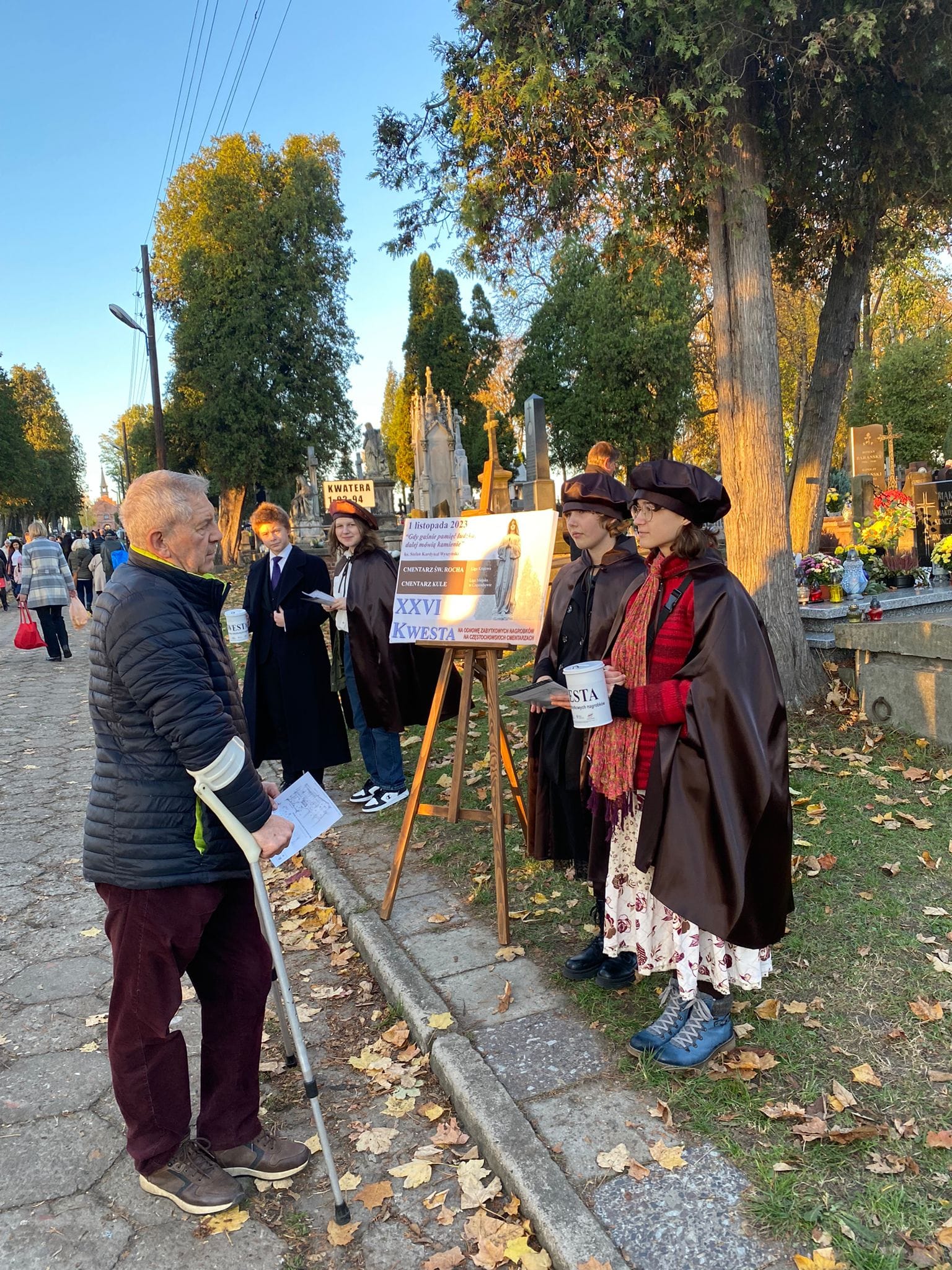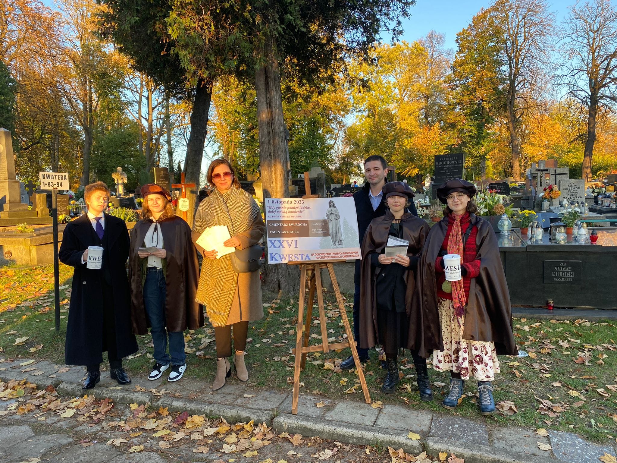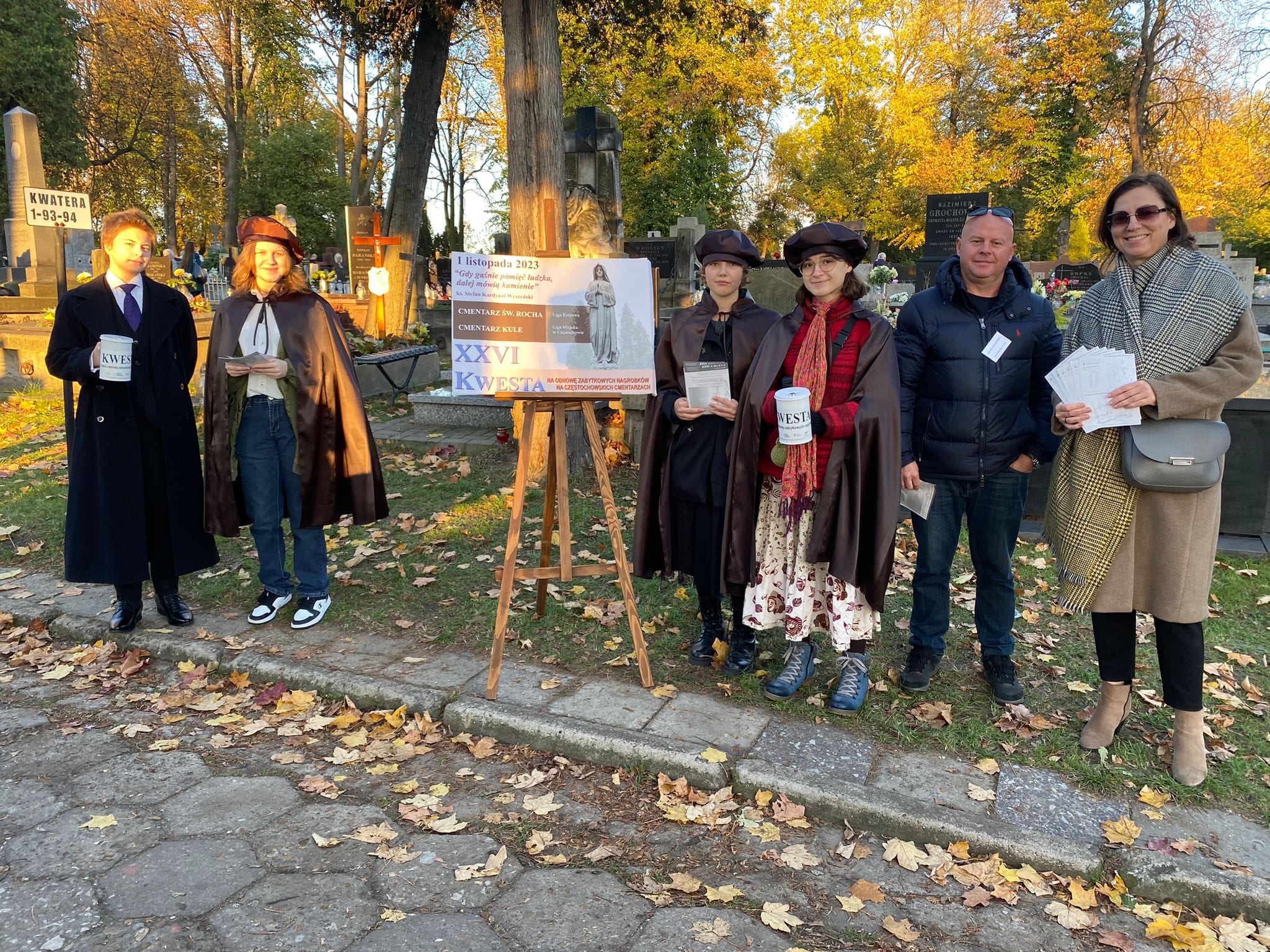 Uczniowie Częstochowskiego Plastyka: Klaudia Burza, Weronika Górska, Antonina Pikuła, Julia Surma oraz nauczyciele: Agnieszka Tyrman, Michał Tkaczyński i Janusz Koniecki - uczestniczyli dzisiaj na cmentarzu Kule w XXVI Kweście na rzecz odnowy zabytkowych nagrobków. Idea kwesty została zainspirowana działaniem na warszawskich Powązkach. Dzięki ofiarności Częstochowian do tej pory udało się odrestaurować 21 zabytkowych grobów. Do akcji corocznie włączają się: artyści, twórcy, dziennikarze, społecznicy oraz my - uczniowie Częstochowskiego Plastyka