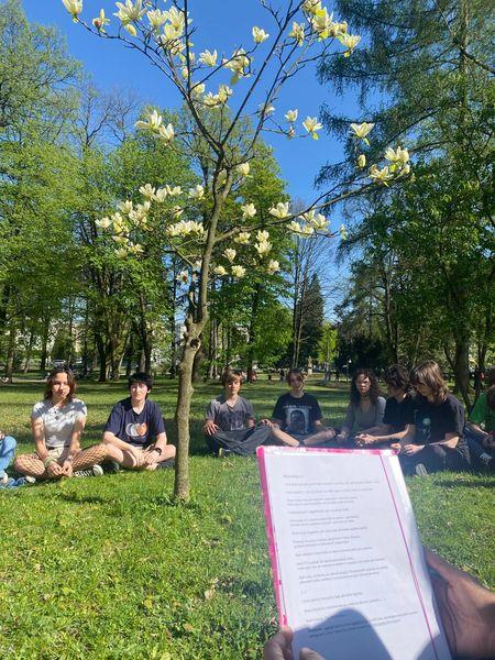 Dziewiątego kwietnia w Parku im. St. Staszica odbyła się akcja z okazji Dnia Ekologii / Dnia Ziemi w nurcie Mindfulness, w której uczestniczyli uczniowie PLSP z kl. 1 g oraz kl. 1 mm, pod opieką p. B. Jarosz oraz p. K. Kot. W czasie imprezy odczytano tekst Desideraty oraz wiersz P. Nerudy pt. "Cisza".
