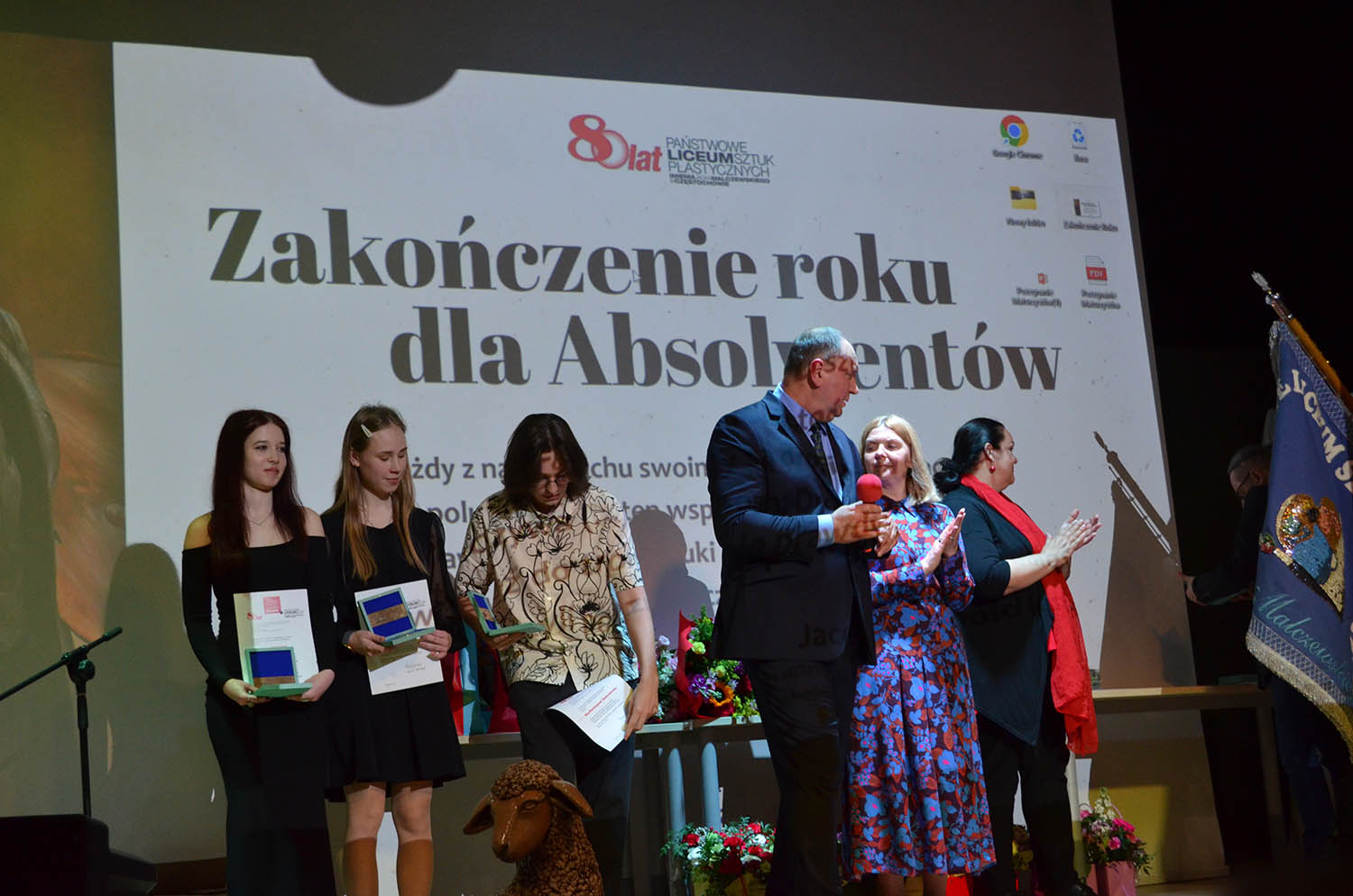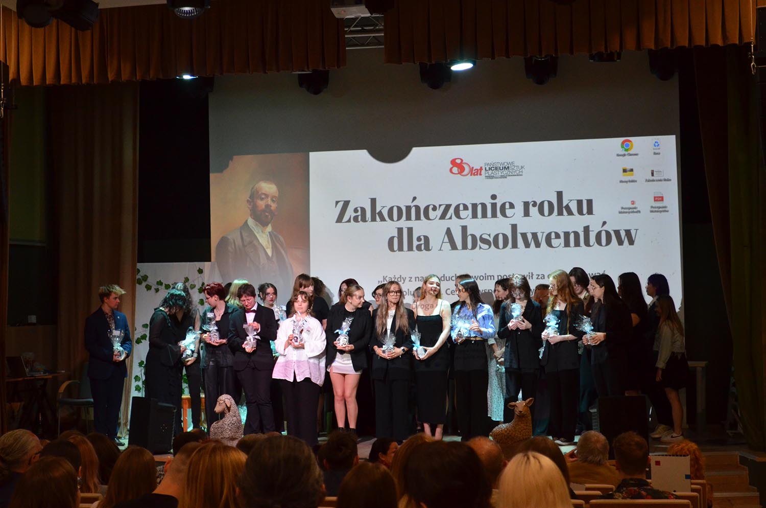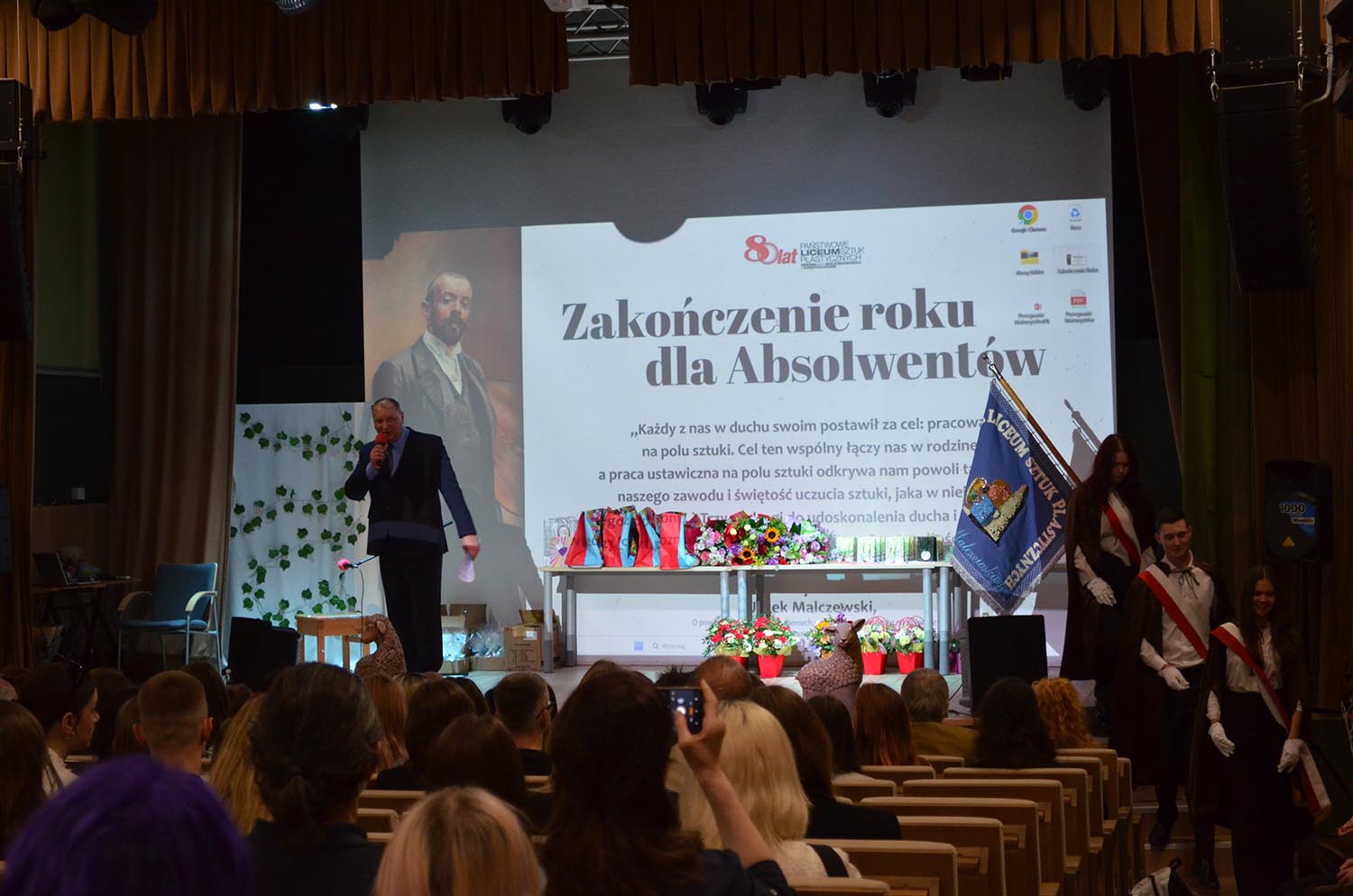 W środę 30 kwietnia uroczyście pożegnaliśmy klasy piąte naszego Liceum. To wyjątkowy moment – symboliczne zakończenie pięcioletniej, artystycznej drogi, pełnej twórczych poszukiwań, wyzwań i rozwoju. Podczas uroczystości przyznano nagrody dla najlepszych absolwentów – za osiągnięcia artystyczne, oraz za zaangażowanie w życie szkoły. Gratulujemy wszystkim nagrodzonym – jesteśmy z Was dumni! Przed naszymi absolwentami teraz ostatni krok – matura.