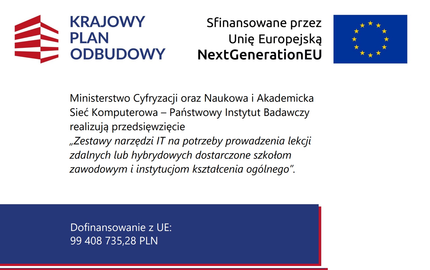Zestawy narzędzi IT na potrzeby prowadzenia lekcji zdalnych lub hybrydowych dostarczone szkołom zawodowym i instytucjom kształcenia ogólnego Zdjęcia (2) Pokaż zdjęcie 1 z galerii. Pokaż zdjęcie 2 z galerii.