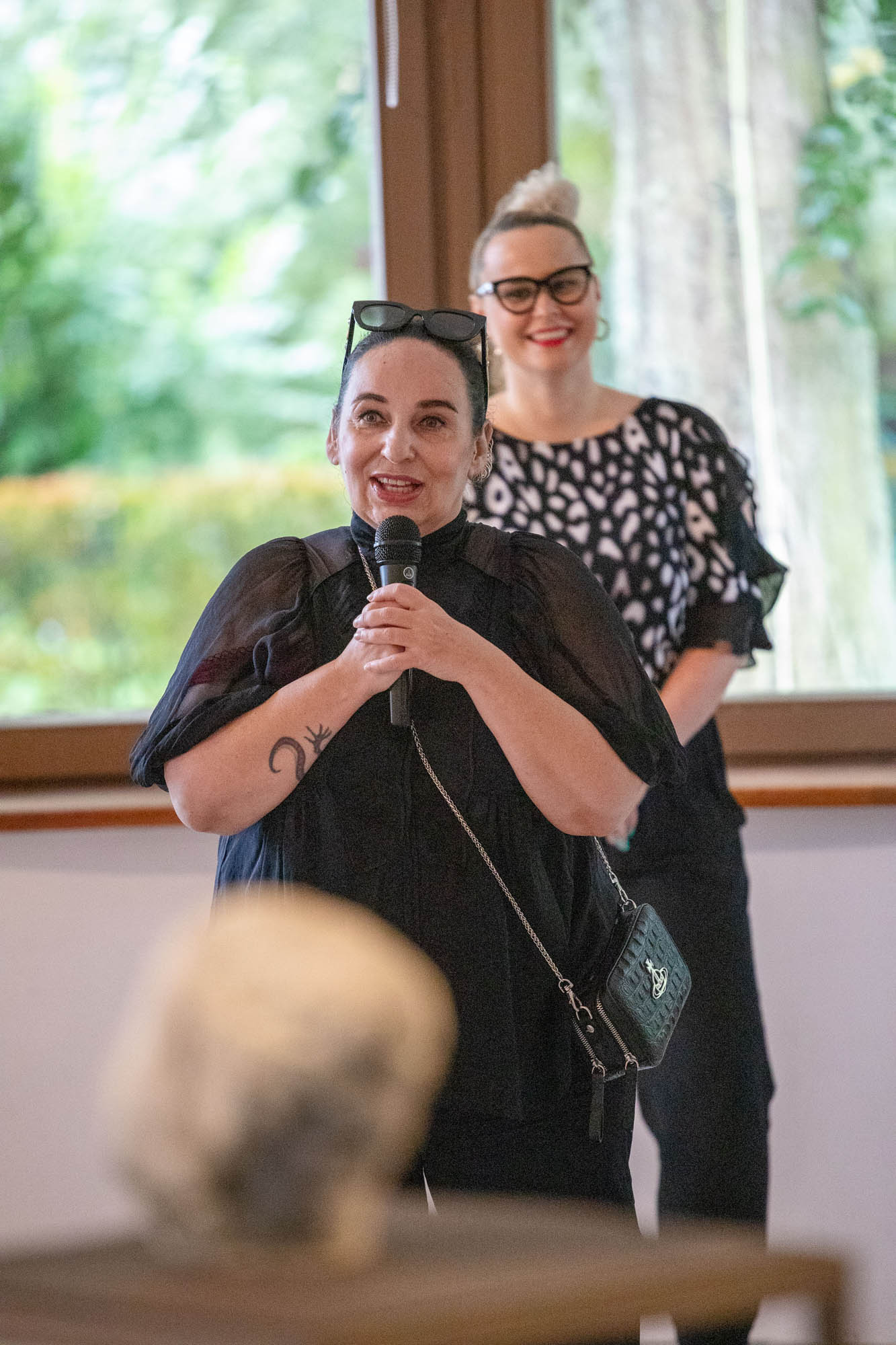 „Pracuję w drewnie, papierze i ceramice. Swoje życie związałam z kaszubską wsią, gdzie zamieszkałam zaraz po obronie dyplomu z rzeźby. Jestem mamą czwórki wspaniałych dzieci. Na naszej ziemi tworzymy Spokój Festiwal, którego pomysłodawcą jest Janek, najstarszy syn. To wydarzenie muzyczno-artystyczne, które pozwala na odkrywanie nowych talentów z różnych dziedzin sztuki. W kontakcie z naturą szukam inspiracji do swoich prac. Wszystko to, co pozostawia ślad zarówno w otaczającej nas rzeczywistości, jaki i naturze ludzkiej jest dla mnie inspirujące. Obecnie jestem w trakcie studiów psychologicznych oraz uczęszczam do studium i szkoły socjoterapii i psychoterapii psychodynamicznej.”