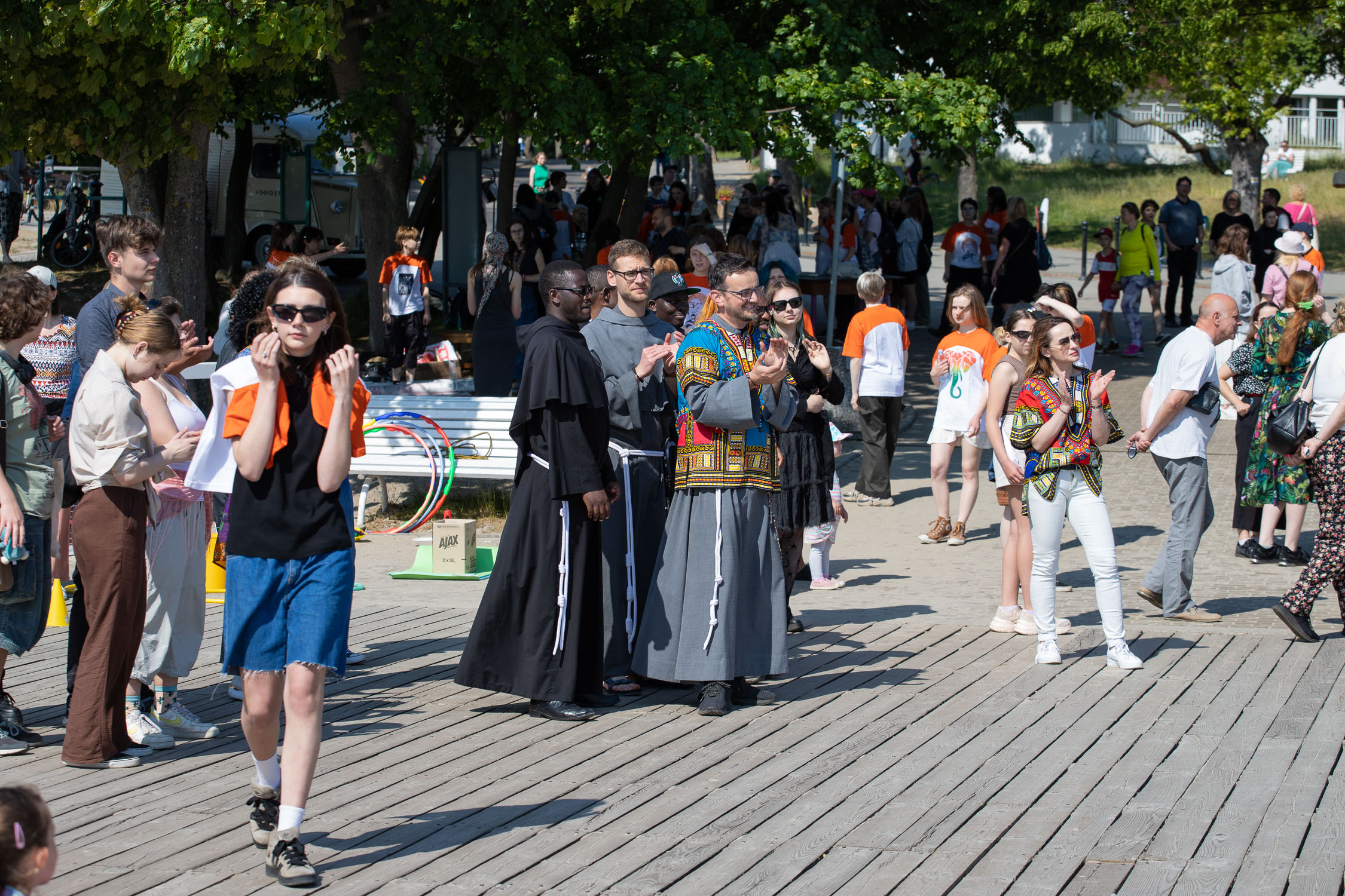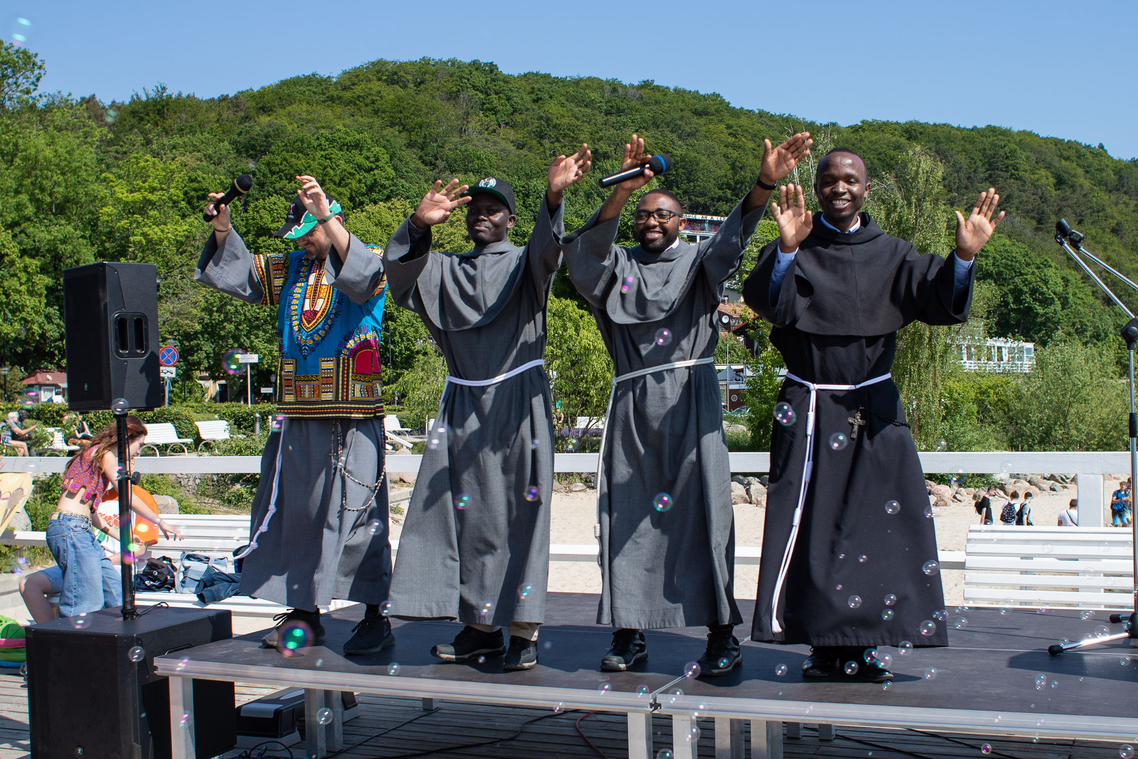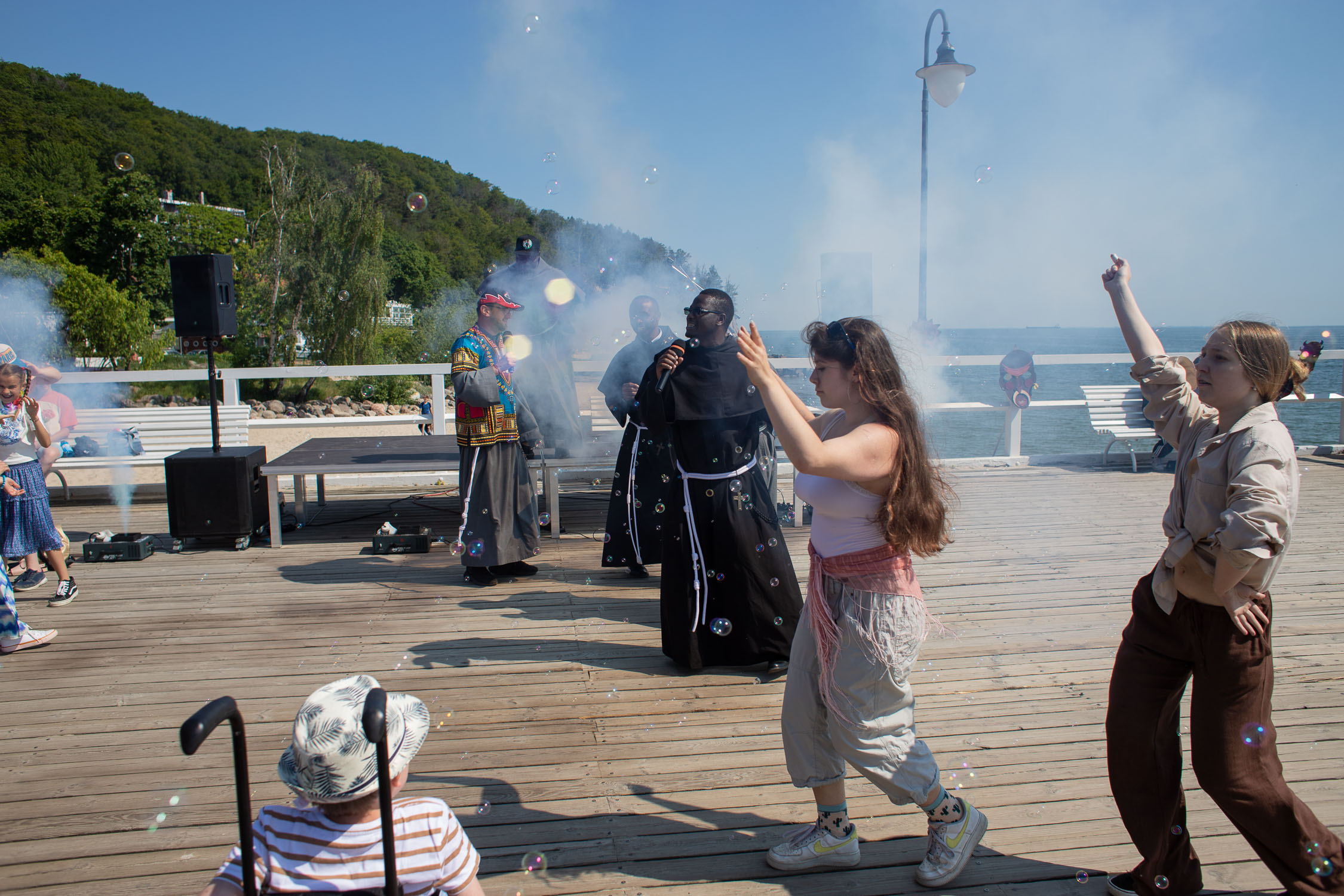 Na zakończenie Tygodnia Solidarności, 11czerwca, na orłowskim molo został zorganizowany happening, połączony z festynem, odtworzyliśmy atmosferę wioski afrykańskiej i nasi uczniowie przybliżali kulturę afrykańską, zapraszając do wspólnej zabawy tanecznej na molo. W czasie trwania festynu można było posłuchać muzyki afrykańskiej i nauczyć się grać na bębnach. Pozyskane środki pozwoliły zrealizować w ciągu roku marzenia dzieci z Bafoussam, dzięki temu mogliśmy podziwiać na zdjęciach, przesłanych nam prosto z misji, nowe sanitariaty i uśmiechnięte buźki czarnoskórych maluchów.