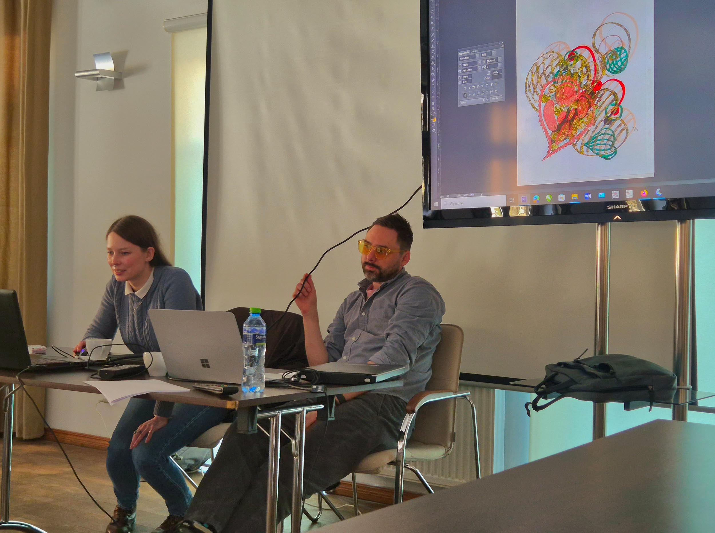 Wspólne warsztaty praktyczne prowadzone przez mgr Patrycję Podkościelny i dr Karola Lewalskiego.