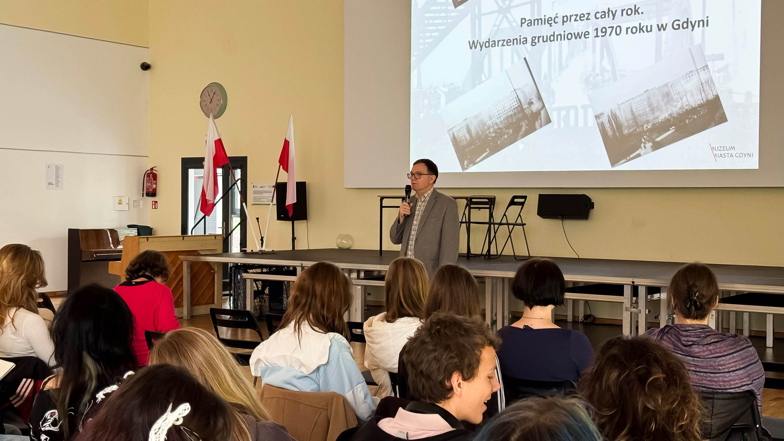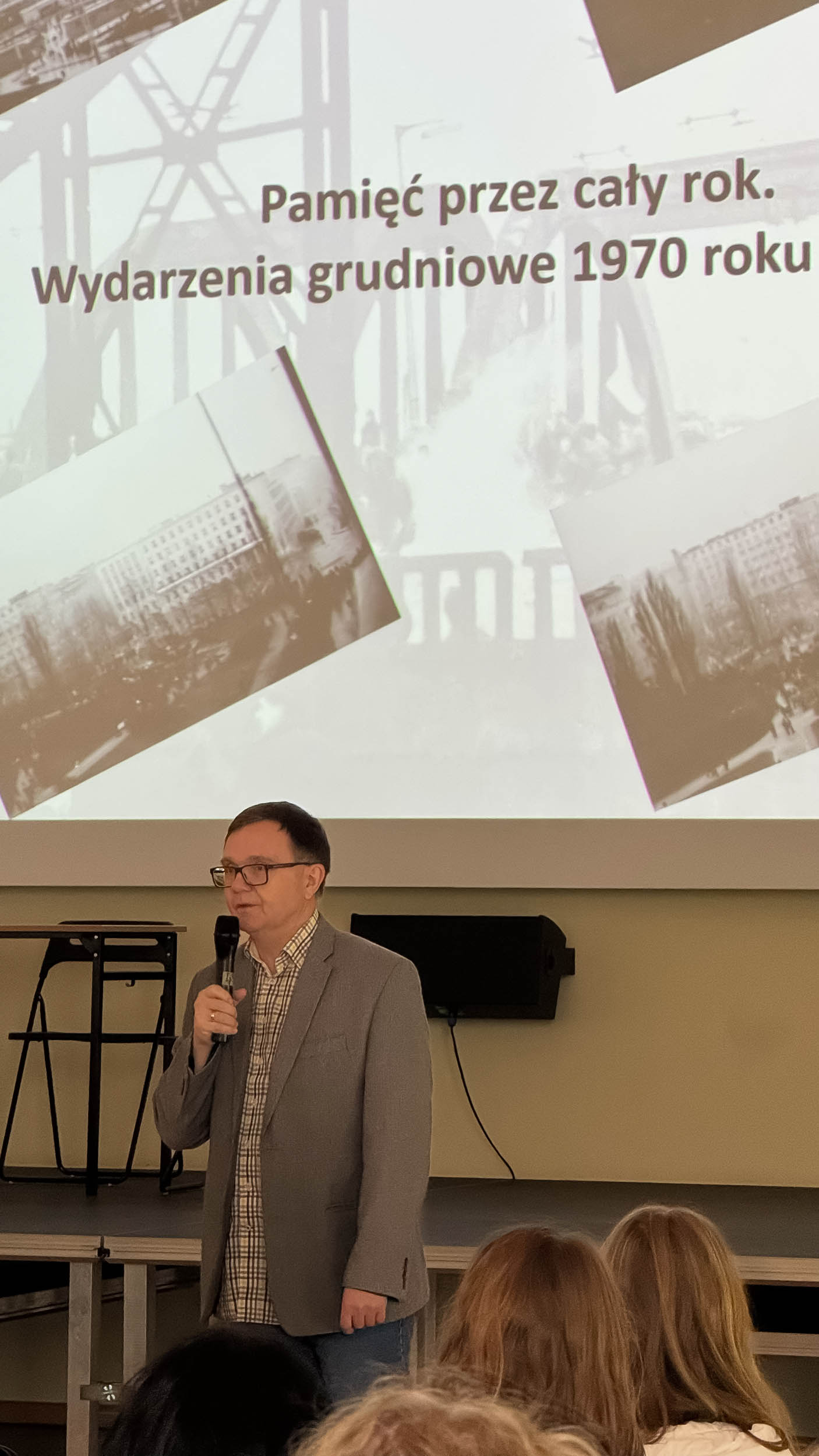 Dziś w sali Art39 odbył się wykład w ramach zajęć z przedmiotu historia i teraźniejszość. Tematem wykładu były wydarzenia grudniowe 1970 roku w Gdyni.