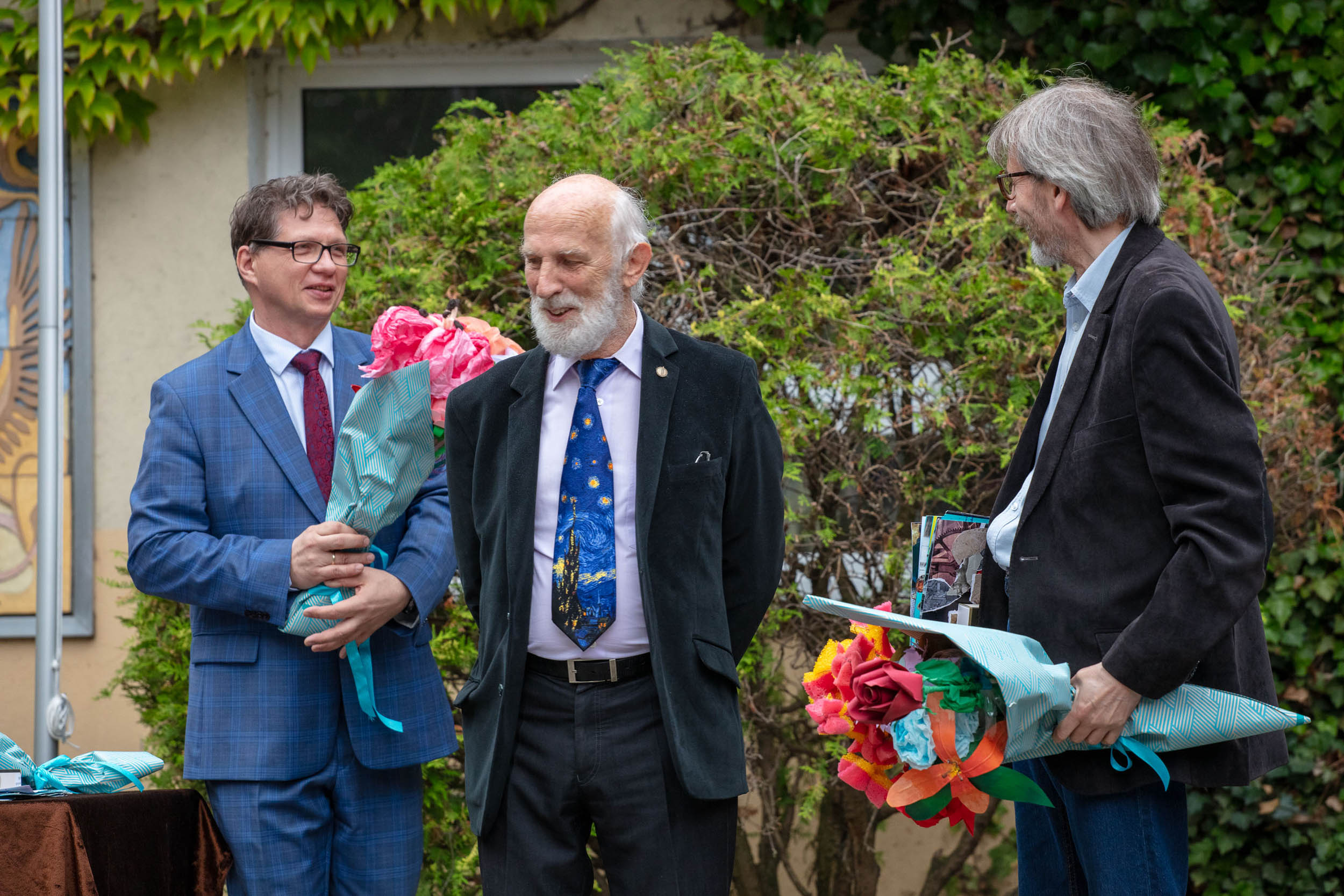 W trakcie uroczystości nie obyło się bez wzruszeń i wspomnień. Na emeryturę odchodzą nasi dotychczasowi dyrektorzy: pan Marek Lis (Dyrektor PLSP im. M. Abakanowicz - szkołą dowodził przez 34 lata od 1991 roku) i pan Andrzej Jurkiewicz (nauczyciel, a później również Dyrektor ds. Artystycznych - 28 lat pracy w szkole). Obaj panowie są także absolwentami naszej szkoły.