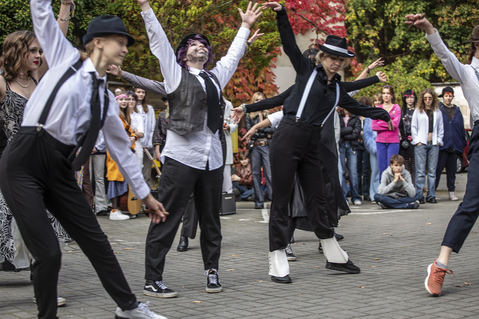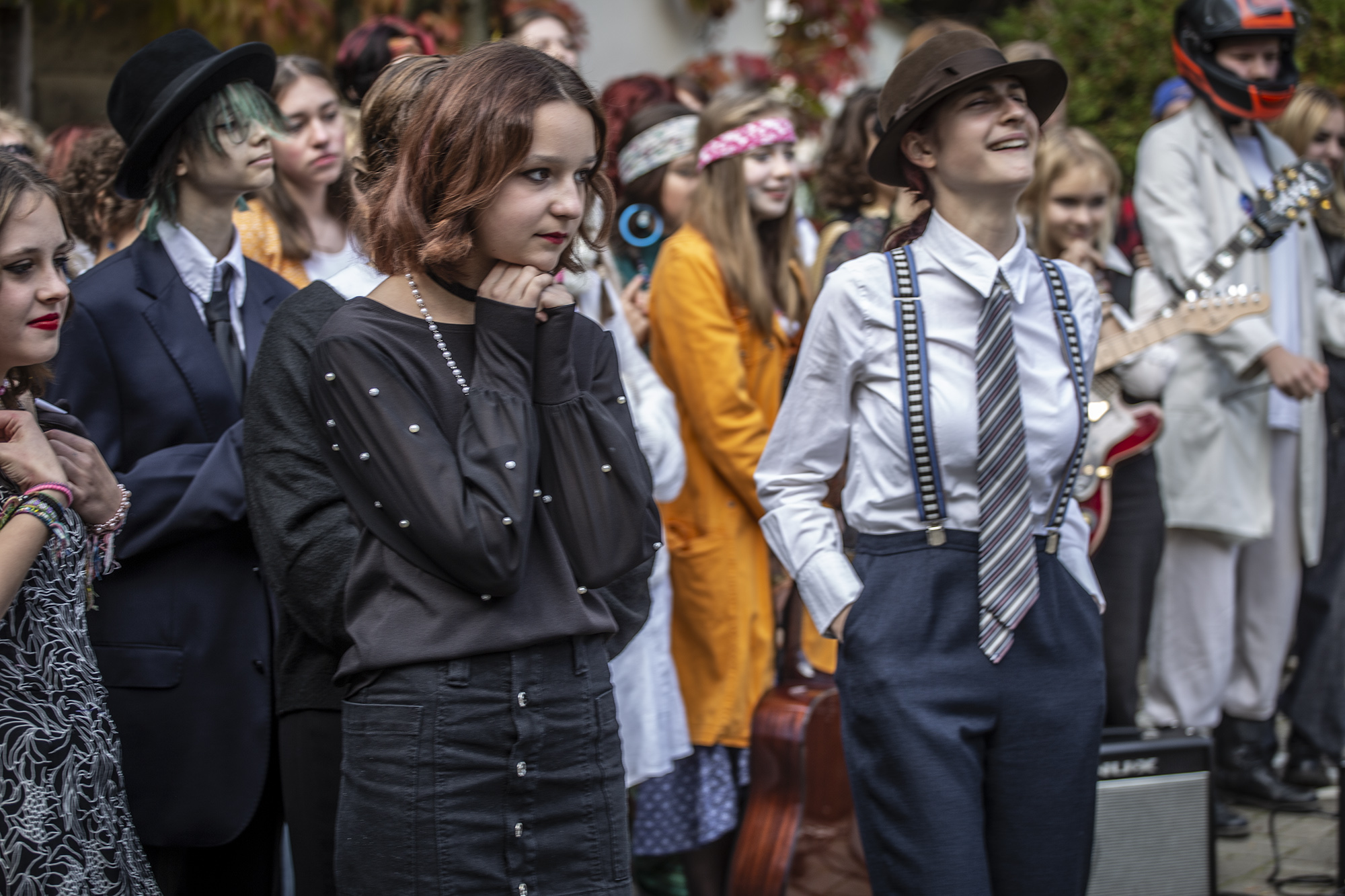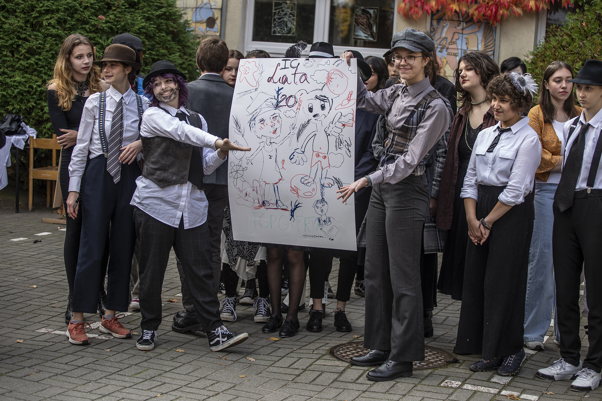 W Dzień Edukacji Narodowej klasy drugie zorganizowały zabawę przyjęcia pierwszoklasistów w poczet uczniów PLSP. Zabawa otrzęsin odbyła się na dziedzińcu szkolnych pracowni. Uczniowie przygotowali prezentacje poświęcone wybranym dekadom z XX wieku. Przez prawie 2 godziny były prezentowane wydarzenia plastyczne, muzyczne, kulturowe i społeczne związane z poszczególnymi dekadami począwszy od lat 20-tych XX wieku. Udanej zabawie sprzyjała również ładna pogoda.