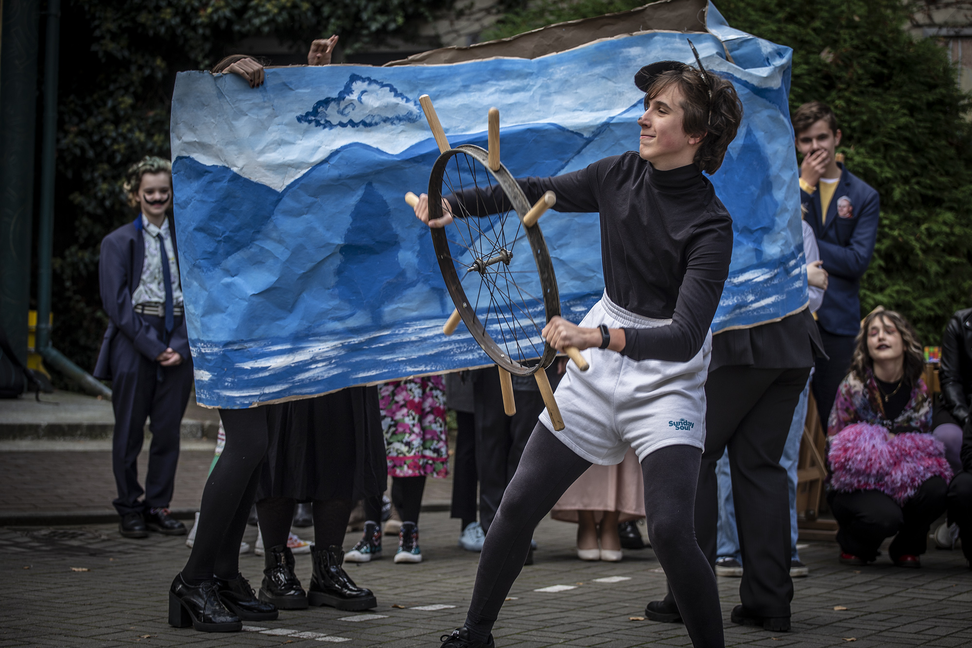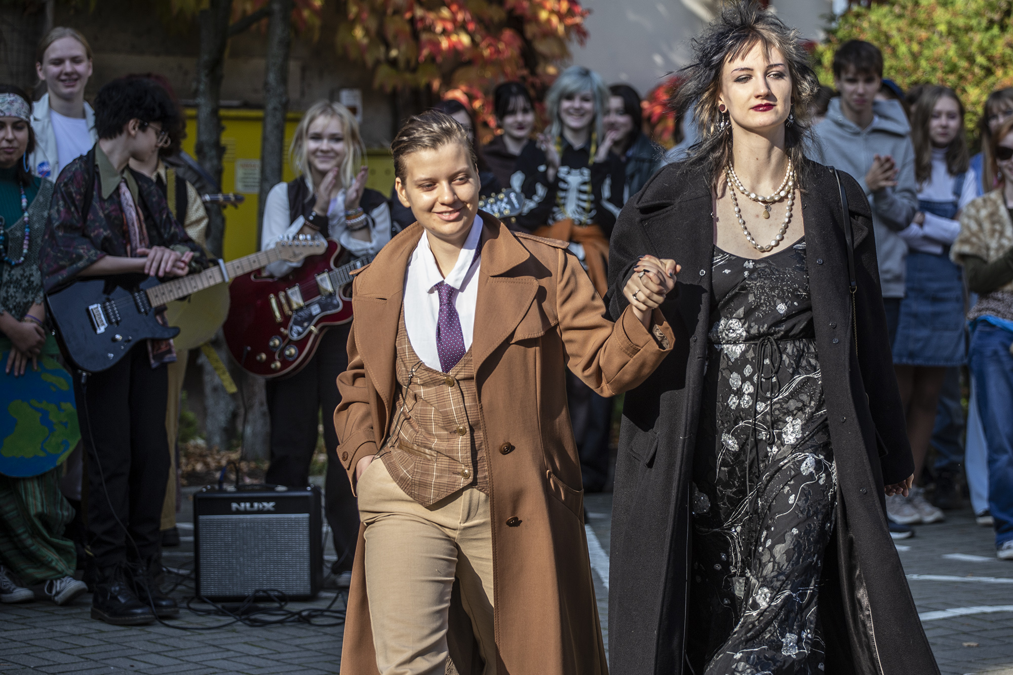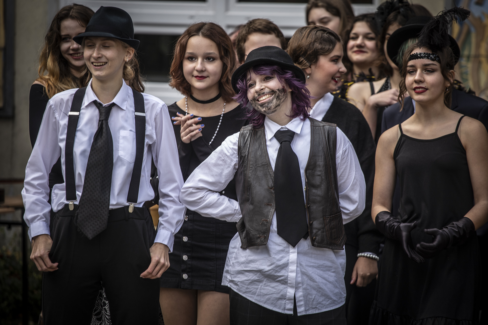 W Dzień Edukacji Narodowej klasy drugie zorganizowały zabawę przyjęcia pierwszoklasistów w poczet uczniów PLSP. Zabawa otrzęsin odbyła się na dziedzińcu szkolnych pracowni. Uczniowie przygotowali prezentacje poświęcone wybranym dekadom z XX wieku. Przez prawie 2 godziny były prezentowane wydarzenia plastyczne, muzyczne, kulturowe i społeczne związane z poszczególnymi dekadami począwszy od lat 20-tych XX wieku. Udanej zabawie sprzyjała również ładna pogoda.