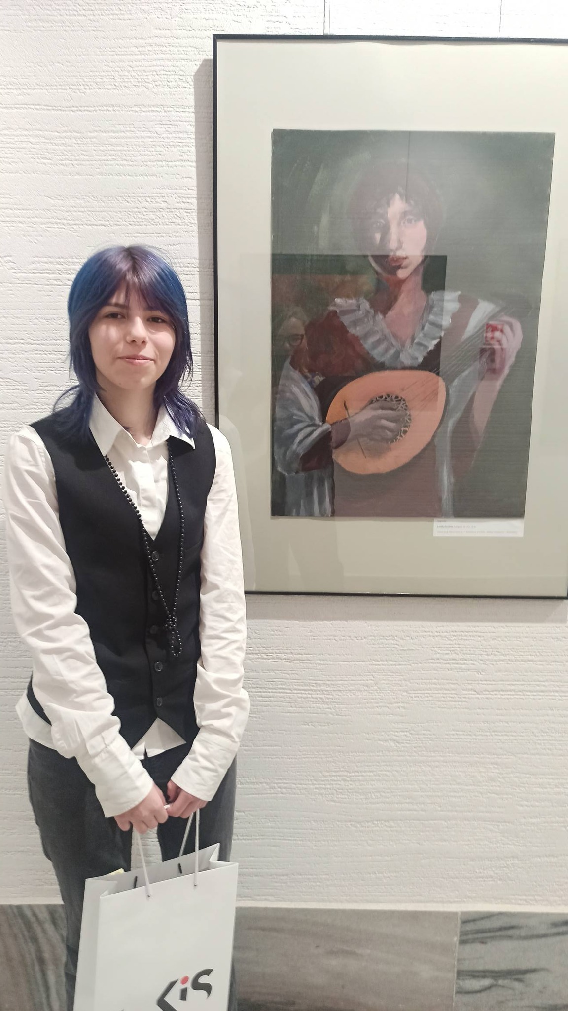 Podczas dzisiejszego otwarcia wystawy laureatów 30 edycji Międzynarodowego Konkursu pt. "Twórczość plastyczna inspirowana muzyką dawną" nagrodę odebrała Amelia Szuleta z klasy pierwszej.