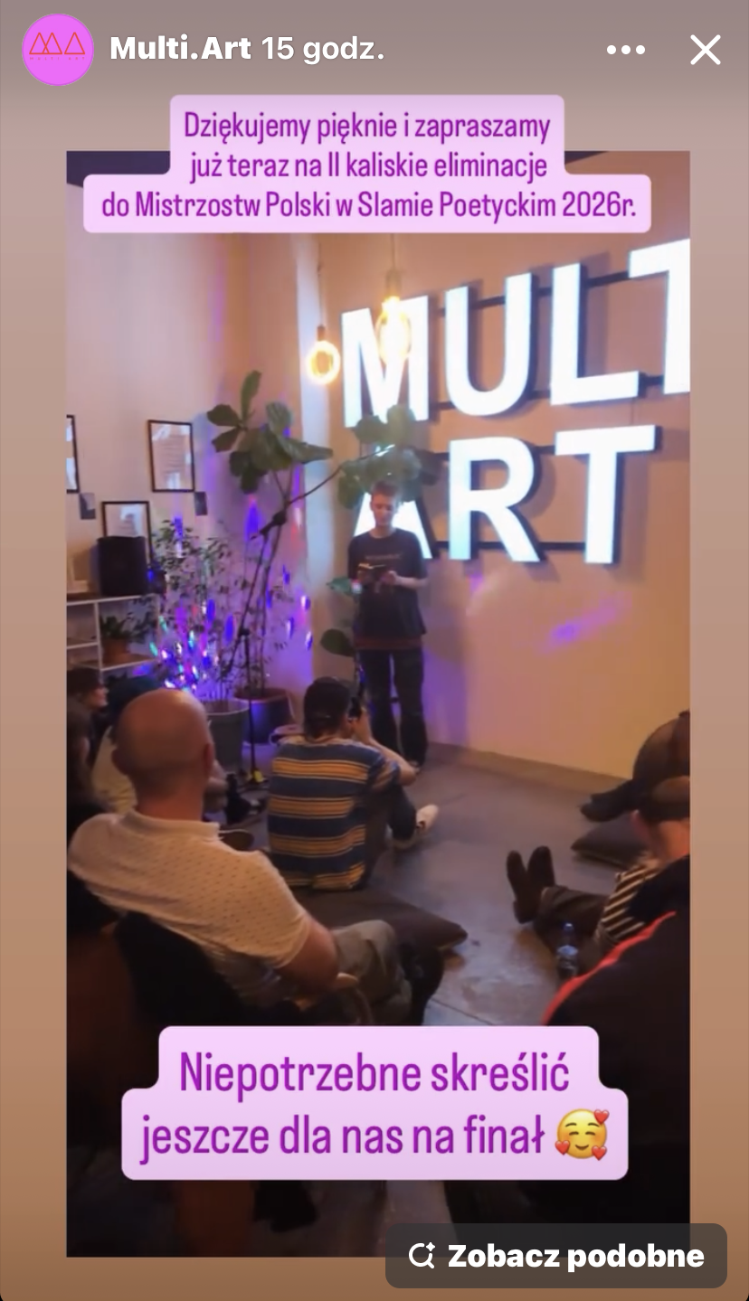 21 marca w siedzibie MultiArtu w Kaliszu przy ul. Targowej 2 odbyły się pierwsze kaliskie eliminacje do Mistrzostw Polski w slamie poetyckim. Wydarzenie zgromadziło miłośników żywego słowa – zarówno uczestników, jak i publiczność spragnioną autentycznych, bezpośrednich emocji.