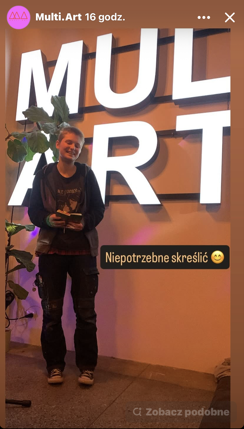 Słuchajcie! Mam naprawdę piękną historię! Nasza uczennica Ewa Sowa - z mojej klasy - występująca pod pseudonimem "Niepotrzebne skreślić", wygrała wczoraj eliminacje do Mistrzostw Polski w Slamie Poetyckim. To był jej debiut na większej scenie, a pierwsze próby miały miejsce rok temu... na lekcji wychowawczej. Co więcej, była najmłodszą uczestniczką i rywalizowała z doświadczonymi slamerami, zdobywając pierwsze miejsce oraz nagrodę finansową. Trzymamy za nią mocno kciuki w kolejnym etapie. Mamy nadzieję, że w sierpniu będzie reprezentować z powodzeniem Kalisz na Mistrzostwach Polski w Poznaniu! M.B.