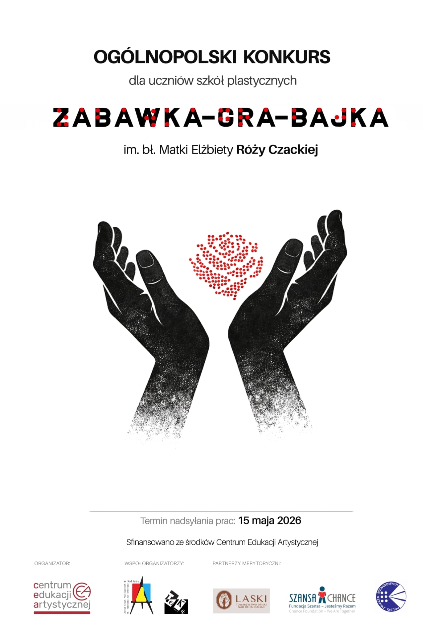 Centrum Edukacji Artystycznej oraz Liceum Sztuk Plastycznych im. Tadeusza Kulisiewicza w Kaliszu zapraszają uczniów średnich szkół plastycznych z całej Polski do udziału w ogólnopolskim konkursie artystyczno-projektowym. Konkurs organizowany jest w Roku 2026 ogłoszonym Rokiem Błogosławionej Matki Elżbiety Róży Czackiej - pionierki działań na rzecz osób niewidomych w Polsce.