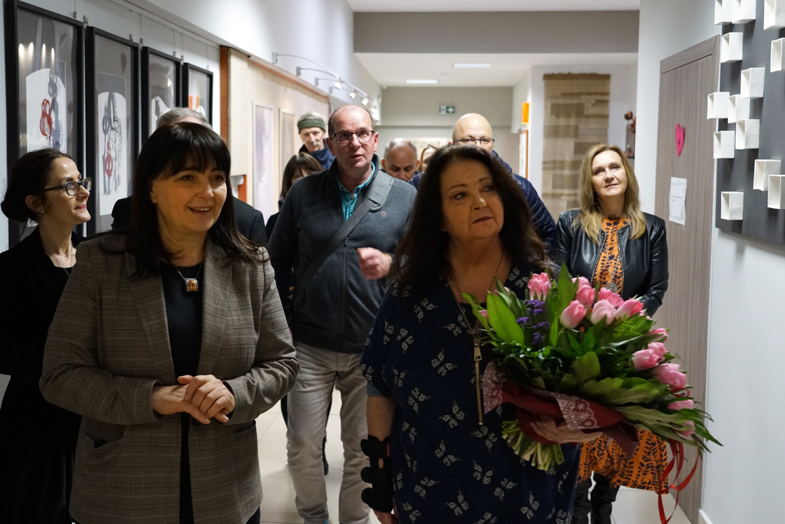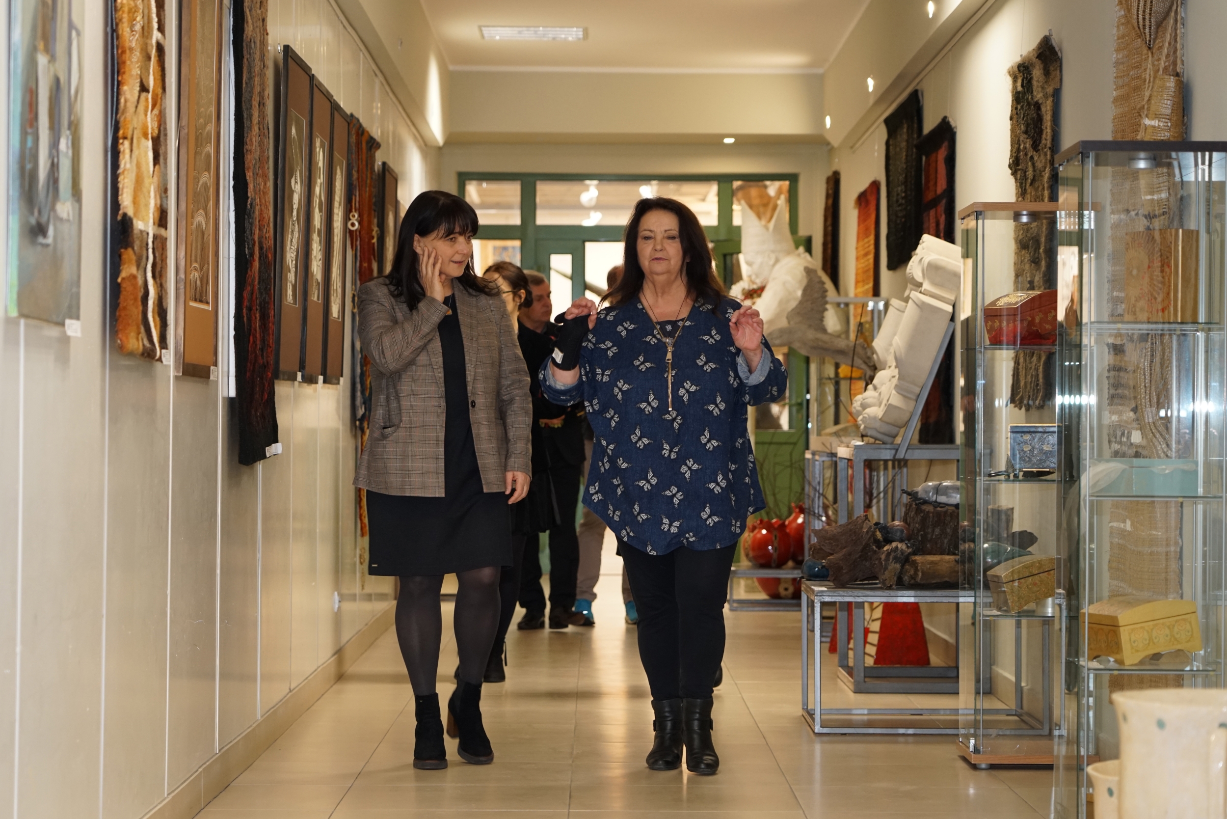W budynku pracowni artystka miała okazję odwiedzić galerię i sale artystyczne, w których powstają dzieła naszych uczniów. Oglądając je, Anna Dymna wspominała własne dzieciństwo i młodość oraz jej próby samodzielnego tworzenia. Wiedząc, jak wiele trzeba trudu, czasu i cierpliwości, by powstały takie prace, wyraziła wielki podziw dla uczniów i ich nauczycieli za stworzenie tak profesjonalnych i oryginalnych prac.