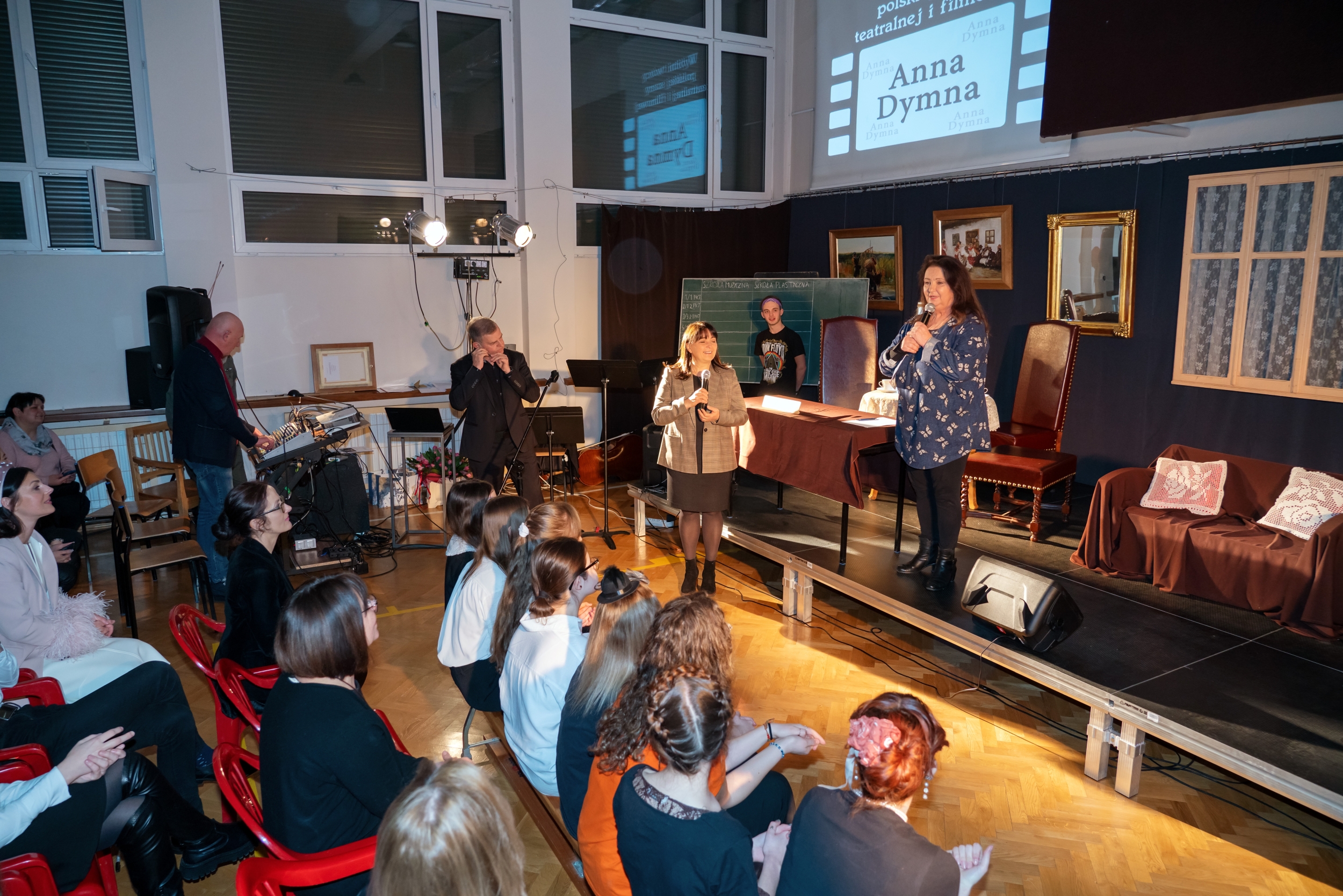 Na Annę Dymną już na początku czekała niespodzianka - uczeń Muzyka wykonał piosenkę jej przyjaciela Marka Grechuty „Dni, których nie znamy”. Do śpiewania szybko przyłączyła się też publiczność. Na pamiątkę wizyty w Plastyku aktorka otrzymała również swój portret namalowany przez jednego z nauczycieli. Artystka ze wzruszeniem przyznała, że nie spodziewała się tak życzliwego przyjęcia.