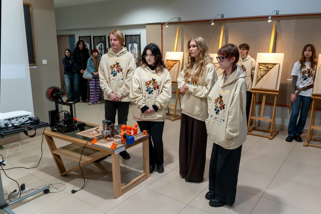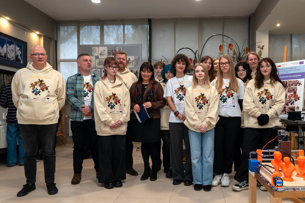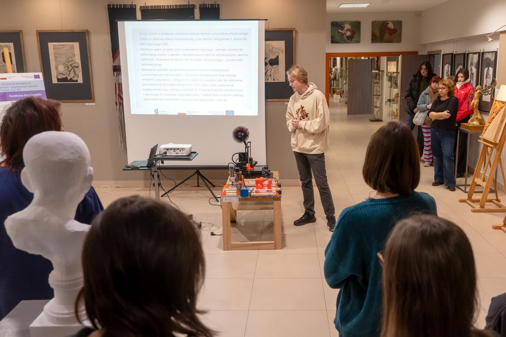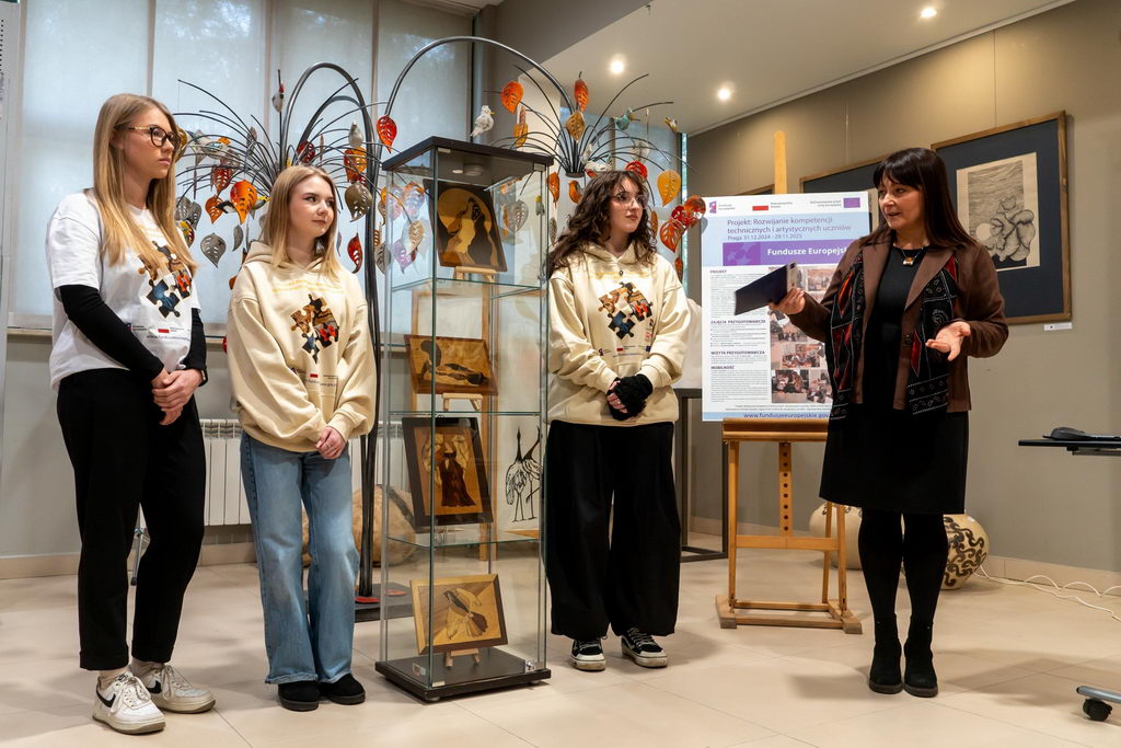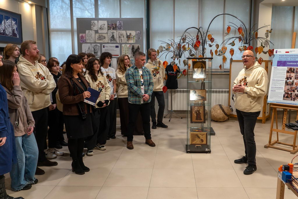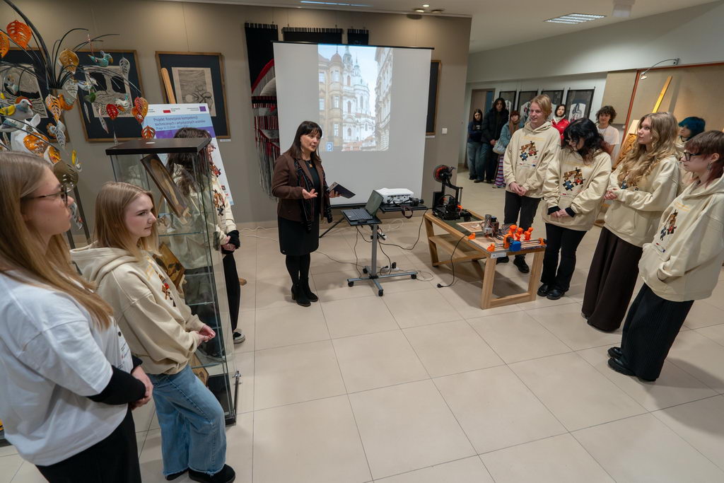 W dniu 28.11.2025 r. w holu pracowni szkolnych odbył się finisaż projektu unijnego pod nazwą – ROZWIJANIE KOMPETENCJI TECHNICZNYCH I ARTYSTYCZNYCH UCZNIÓW. Uczestnicy zaprezentowali prace wykonane podczas warsztatów plastycznych w Pradze i podzielili się ze społecznością szkolną swoimi doświadczeniami i wrażeniami z pobytu w czeskiej stolicy.